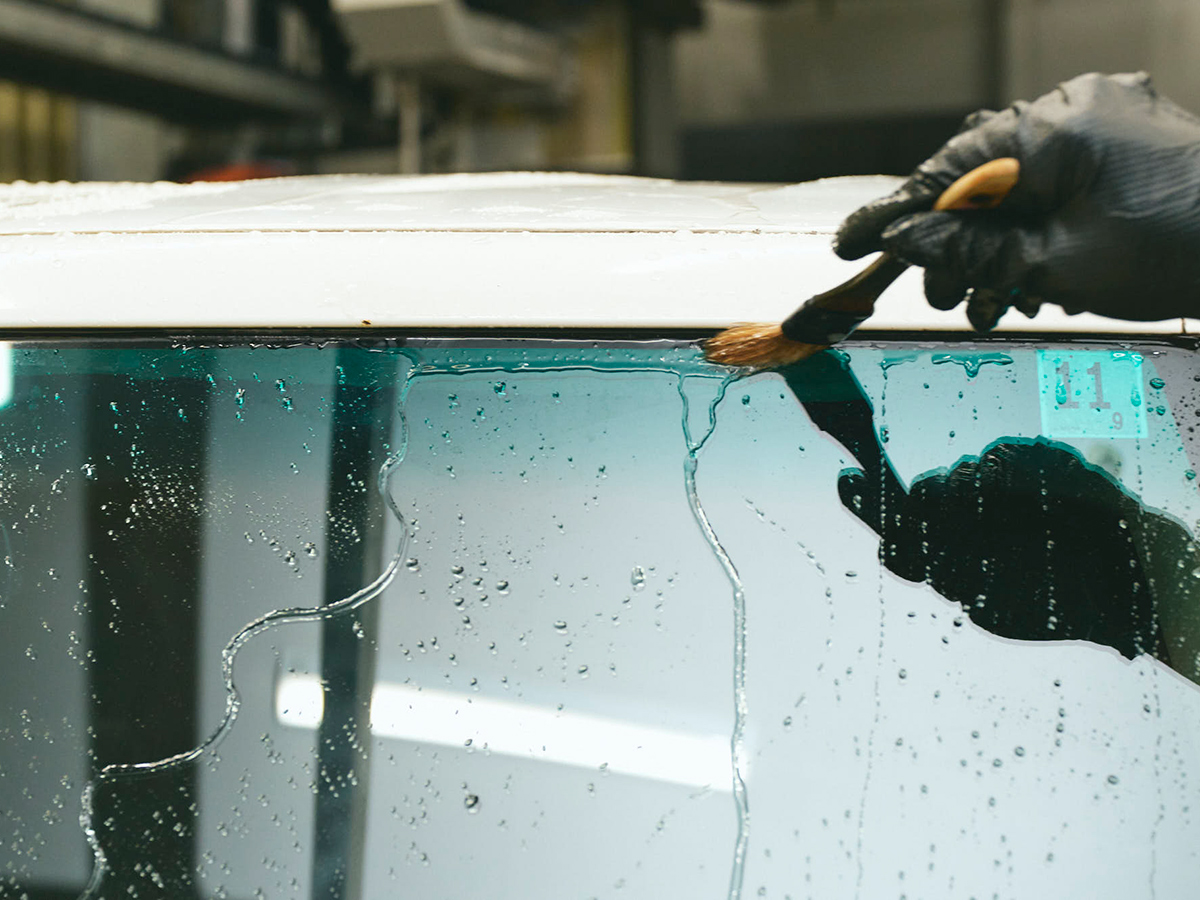 この工程では筆のようなブラシを用いて窓枠など細かな部分も純水で洗い流していきます。