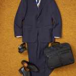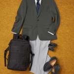 ▲ジャケット2万1890円、パンツ1万3090円、ベルト5489円/すべてモアレス、シャツ5489円/洋服の青山(すべて洋服の青山 池袋東口総本店)、タイ2990円/ユニクロ(ユニクロ)、シューズ3万8500円/ワンサードリサーチ(ジョワイユ)、バッグ6万8200円/ブリーフィング(ブリーフィング 六本木ヒルズ店)