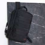 ビジネスシーンで人気のシャトルタイプの縦長バックパック。ブリーフィングの中でも最も強度や耐久性、耐摩耗性に優れたバリスティックナイロンを使用しているため、見た目にも武骨な表情を湛えます。B4サイズまで対応しているため大きめの書類やラップトップなども難なく入る収納性も使い勝手の良さに貢献しています。