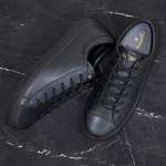 オールブラックでミニマルに仕上げた「オールスター クップ OX」。スムースレザーを使用したアッパーが上品な表情のため、まるでドレスシューズのよう。ビジネスシーンにもハマります。シュータンの足当たりを改善し、履き心地も向上。革靴感覚で履けるスニーカーとして1足持っておくと何かと活躍してくれるはず。
