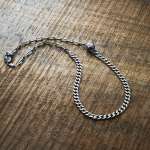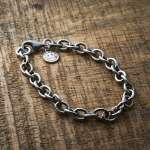 チェーンタイプのブレスレットやネックレスでは定番中の定番、アズキチェーンを使用したシルバーブレスレット。シンプルでありながら、“LEO”デザインのコインチャームでさりげなく遊び心も加えています。素材にはシルバー925を採用した、大人の休日にぴったりな一品です。