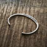 2011年に湘南でスタートしたアクセサリーブランド、サンク。こちらのバングルはネイティブアメリカンのナヴァホ族の伝統技術“リポウズ”を用いて作られており、裏面から手作業で打ち出すことで表面に独特な凹凸が付けられています。1点1点手作業で丁寧に仕上げることでミニマルなのに味のある一品に。