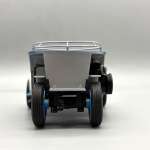 ▲ボディを取り付ける前のシャシー。前輪に対して後輪がトレッド480mmと狭いことがよくわかる