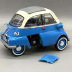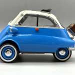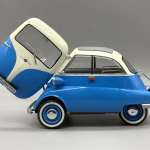 今回は1950年代に人気を博して消えていった、バブルカーの代名詞であったBMW イセッタ 250を製作しました。オニギリみたいなカタチでフロントパネルがドアとして開閉するというデザインに1/16というスケールながら手のひらサイズという、実にプラモデル映えするクルマでもありました。個人的意見ですが、パーツも少なくビギナーモデラーでも組みやすい優良キットだと思います。