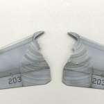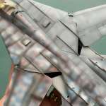 ▲「F-14」は可変翼なので翼の付け根には同心円状のこすれ跡ができる。キットはデカールでこれを再現。塗装するのは手間がかかるので、これはありがたい