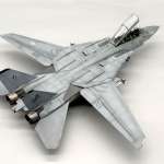 「F-14」は特徴的な機体形状に可変翼を採用していることもあり、発売時期が古いキットの場合、製作難易度が高いモデルと言うモデラーも多いのですが、しかしハイビジ時代の艶やかなマーキングは模型映えすることもあり人気が高く(大きな垂直尾翼が2枚あるので)、凄みのあるロービジ塗装では退色表現塗装が腕の見せ所になるので、塗装にこだわるモデラーに人気があります。