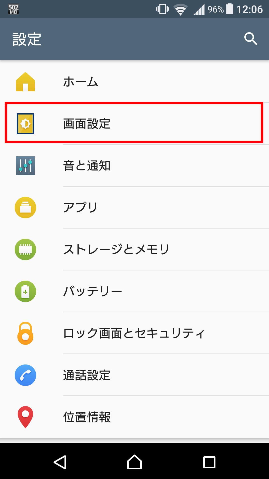 [設定]を開き、[画面設定]へ。