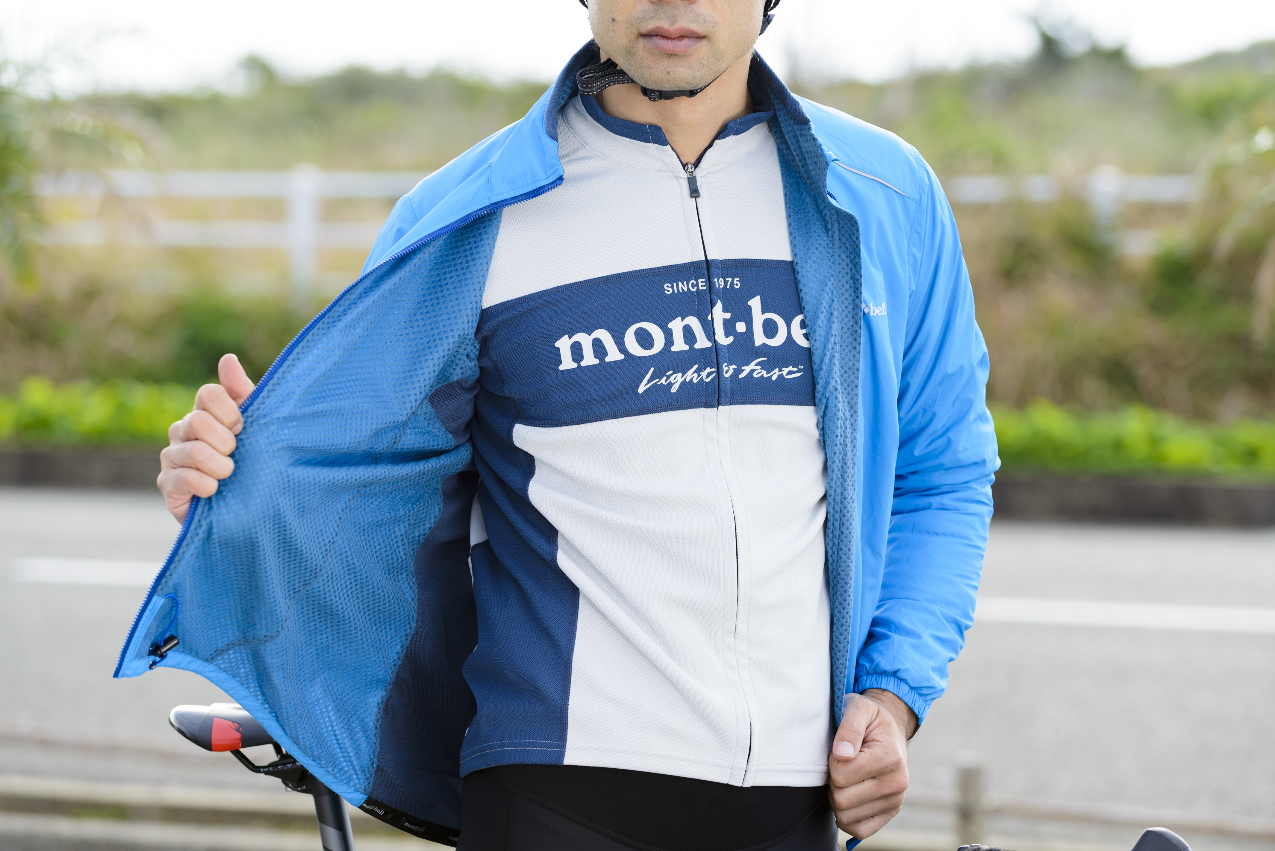 今回使用したのは、モンベルの秋冬向けサイクリングウエア。保温性が高いだけでなく、ストレッチ性にも優れており、ペダリングによる身体の動きを妨げません。