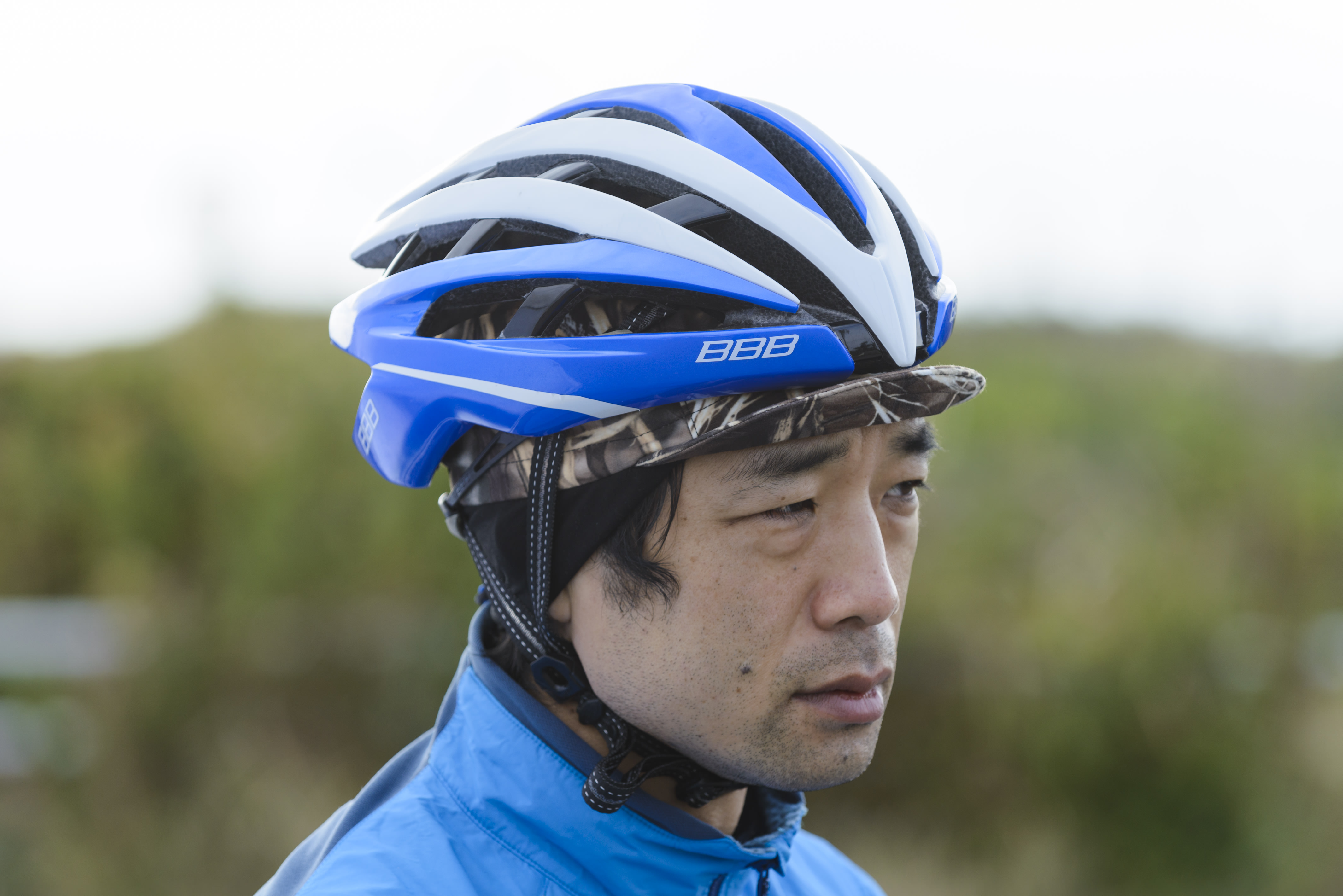ヘルメットは、BBBの「イカロス」というプロレースチームも使用する軽量モデルを使用。寒さ対策として、ヘルメットの下には耳まで覆うサイクリングキャップを着用しています。