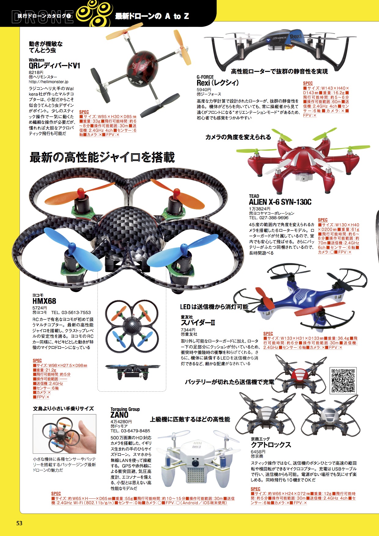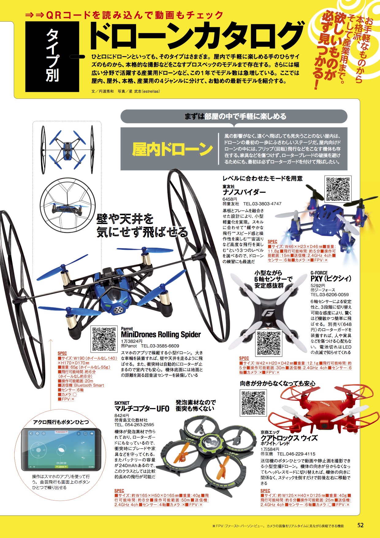 ――本誌でもカタログパートを設けていますが(写真上)、入門用の室内でも飛ばせるドローンはどういったものがお勧めでしょうか?