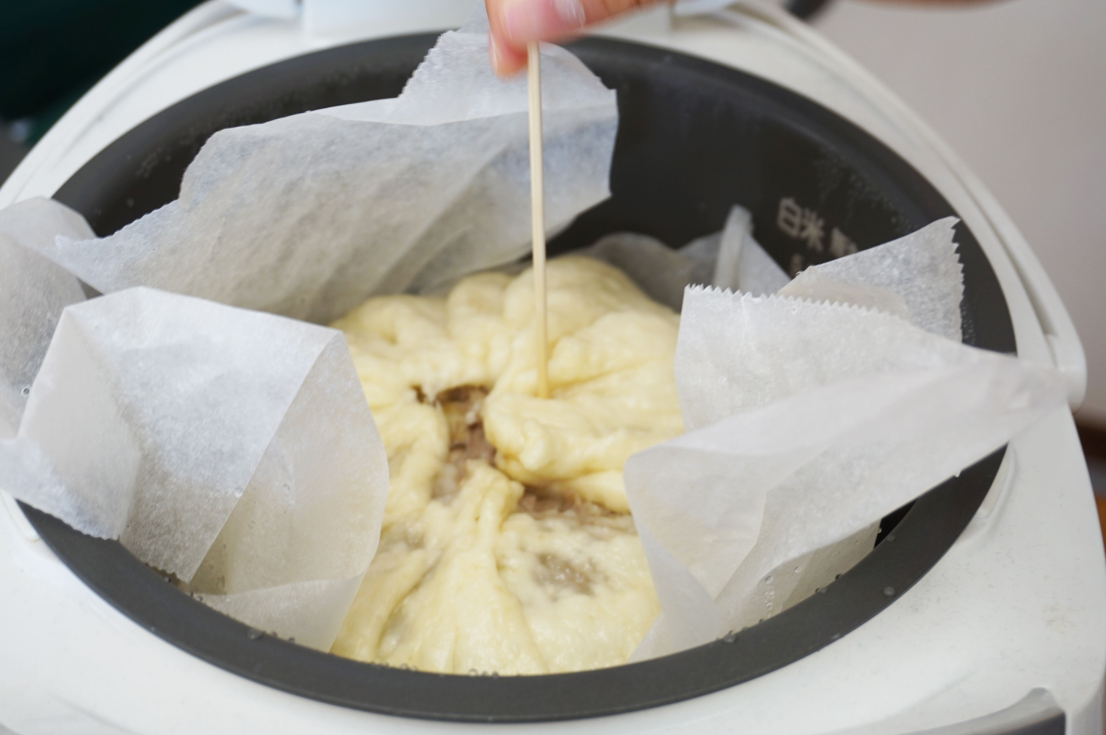 竹串に生地がくっついてこなければOKです。もし火が通っていないようなら、クッキングシートの裏にお湯が残っていることを確認し、もう一度早炊きします。