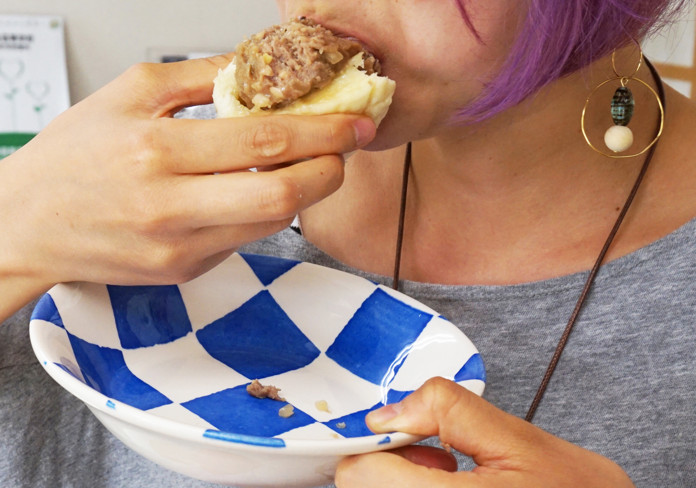 いざ、実食! 生地の甘みとジューシーな肉ダネがベストマッチ。甘じょっぱ系のしっかりとした味つけで、子供から大人まで好きな味だと思います。具がギッシリで、無論、食べ応えも抜群。一切れ1/6カットにしたのですが、満足度は普通の肉まんの倍以上で、ちょっとだけ贅沢な気持ちになれました。