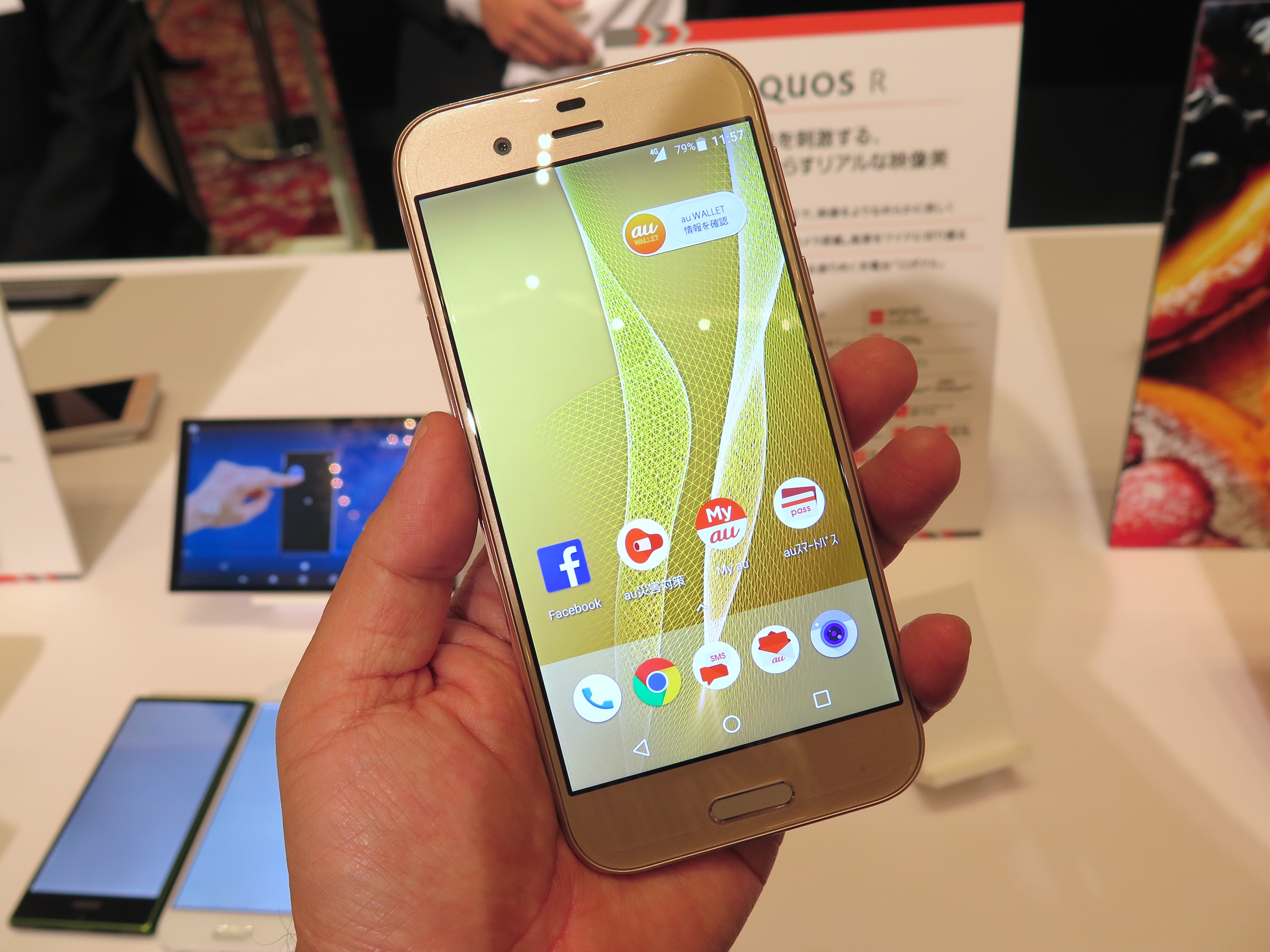 AQUOS Rは、素早くスクロールでき、残像を抑えてなめらかに表示する約5.3インチの「ハイスピードIGZO」を搭載。au最高の下り590Mbpsにも対応しています。さらに、約2260万画素のメインカメラは光学式手ブレ補正付き。フロントカメラも広角&約1630画素で、セルフィーの満足度も高そうです。