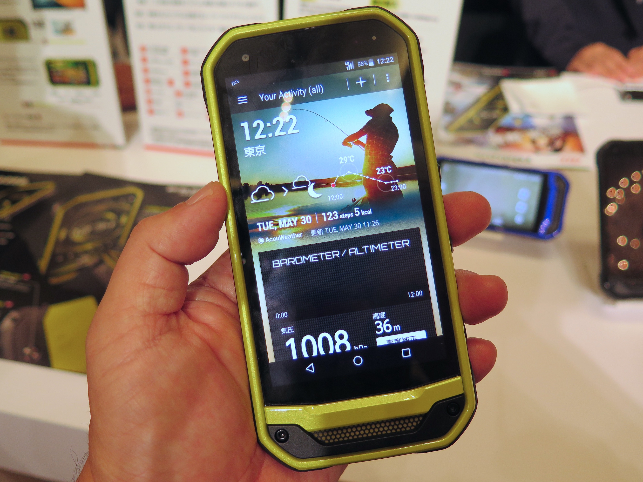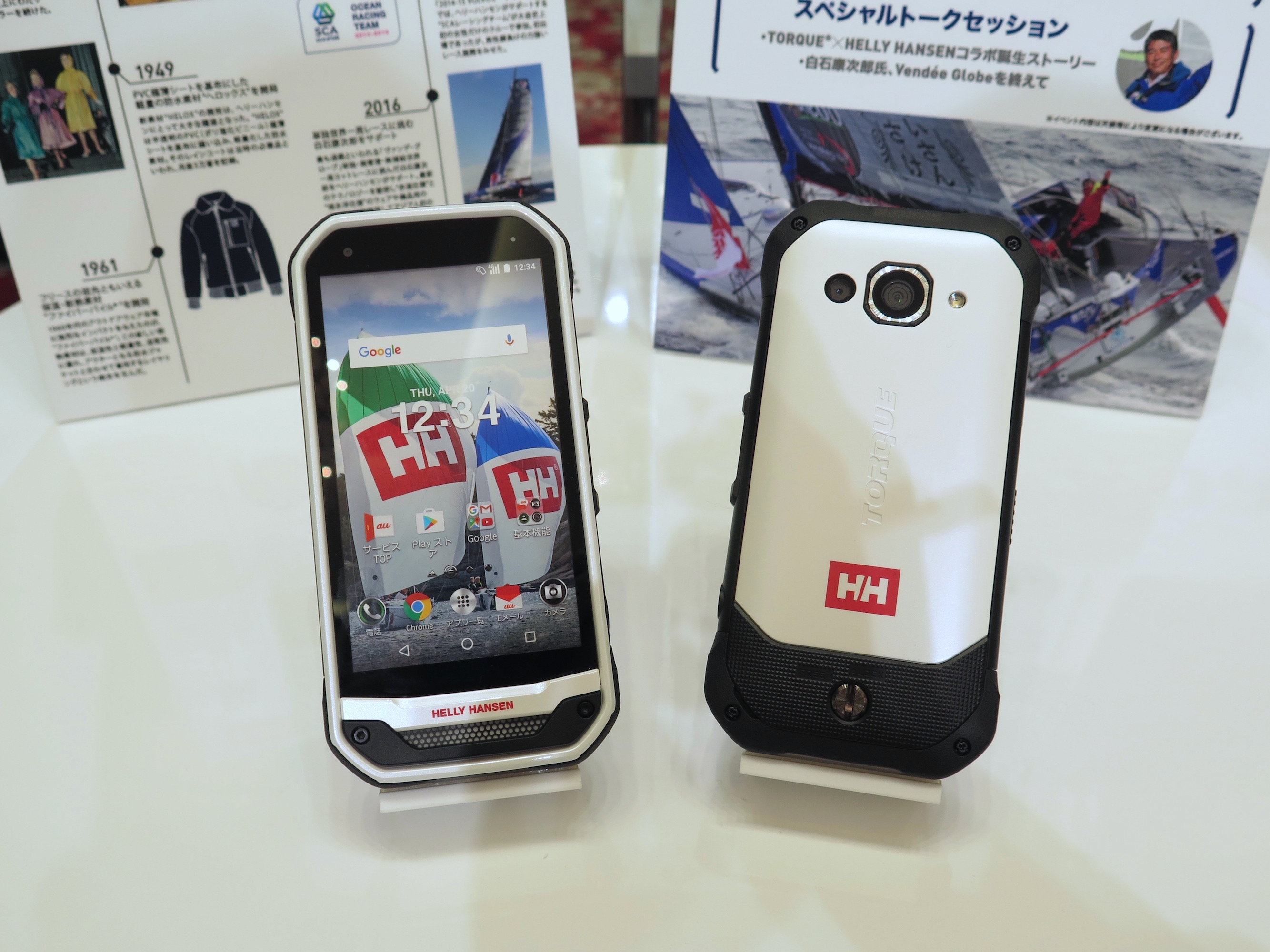 背面にはふたつのレンズが搭載されていて、中央にあるのがTORQUE独自の「スーパーワイドアクションカメラ」。135度でフルHDビデオを撮影でき、アクティビティデータも記録できるというユニークなもの。ディスプレイは4.6インチHDですが、視認性は上々。6月下旬発売の通常モデルのほかに、防水ウェアブランド「HELLY HANSEN」とのコラボモデルが7月下旬から300台限定で発売されます。