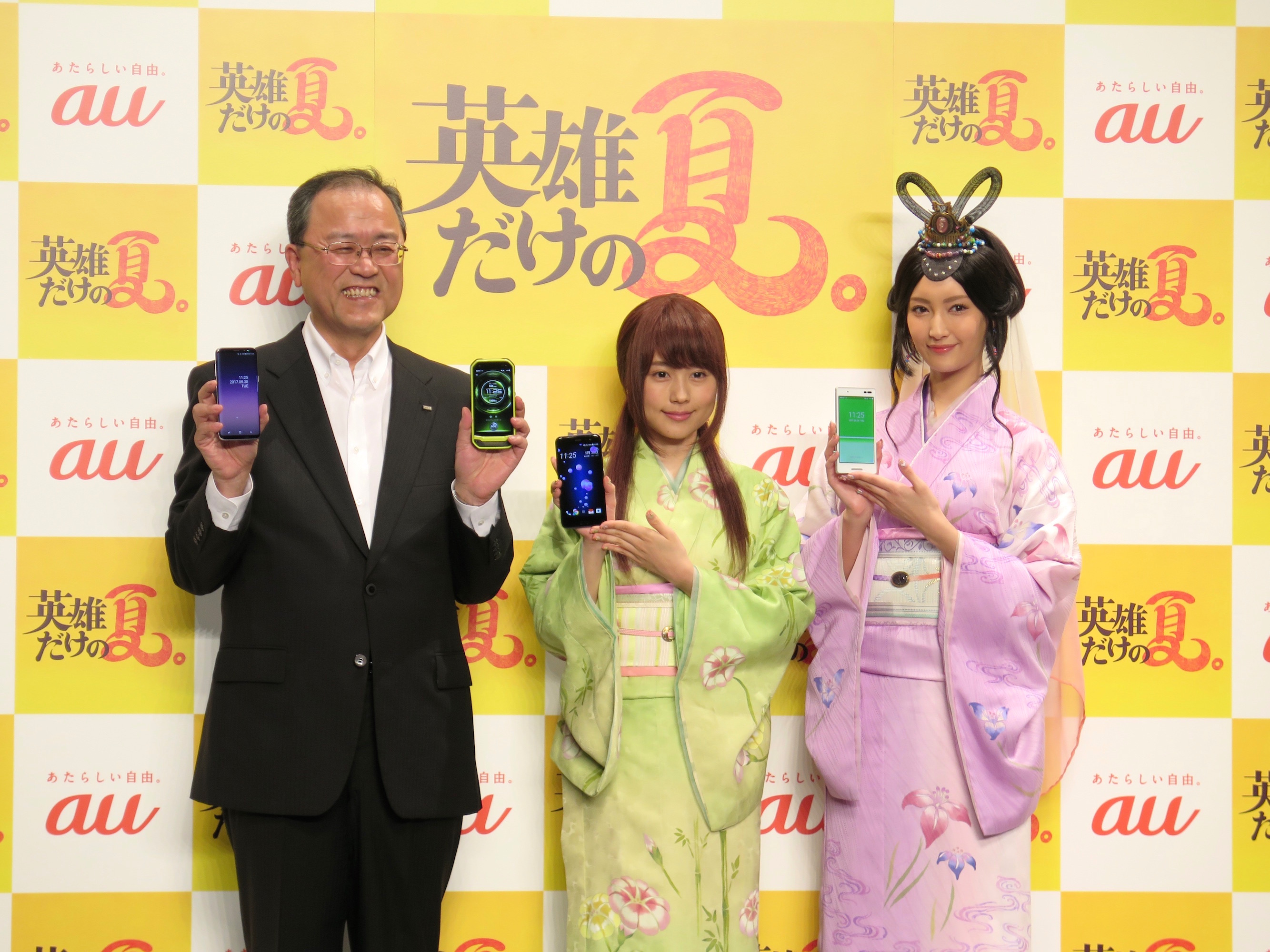 ▲発表会には、auのCMに出演中の有村架純さんと菜々緒さんも登場した