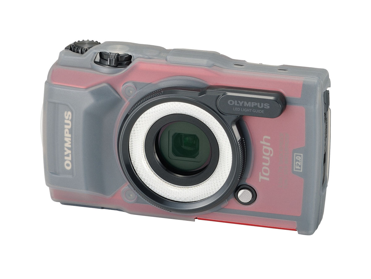 アクセサリーも充実。マクロ撮影時にカメラに内蔵されたLEDの光を被写体に均一に照射できるようなるLEDライトガイド「LG-1」や、防水の耐圧水深を15mから45mまで引き上げてくれる防水プロテクター「PT−058」、カメラ本体の表面を傷から守ってくれるシリコンジャケット「CSCH−126」、リュックサックやベルトなどに固定でき、簡単に片手でとりだせるスポーツホルダー「CSCH−123」など、サポートアイテムも充実しています。