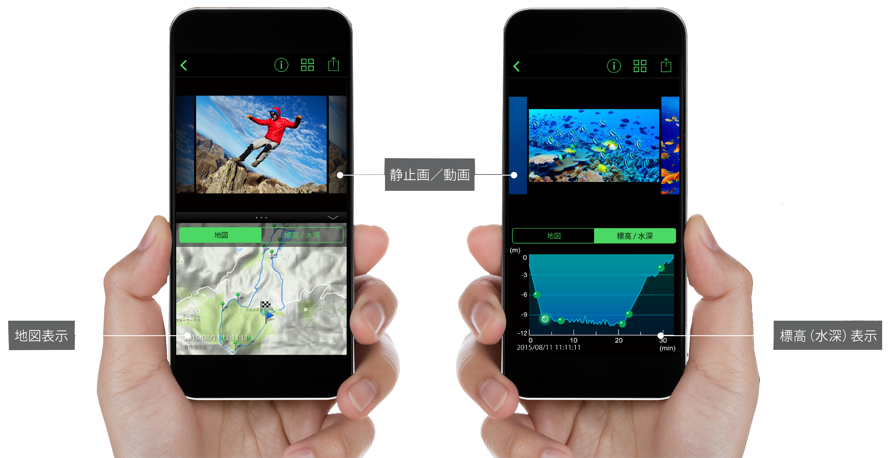 また、今回新たに「フィールドセンサーシステム」を搭載。GPS、気圧、温度、方位などのセンサーから取得したトラッキング情報を、カメラ上で表示したり、専用のスマートフォンアプリ「OLYMPUS Image Track」を使って、映像とログを同時表示して楽しむことができるようになりました。