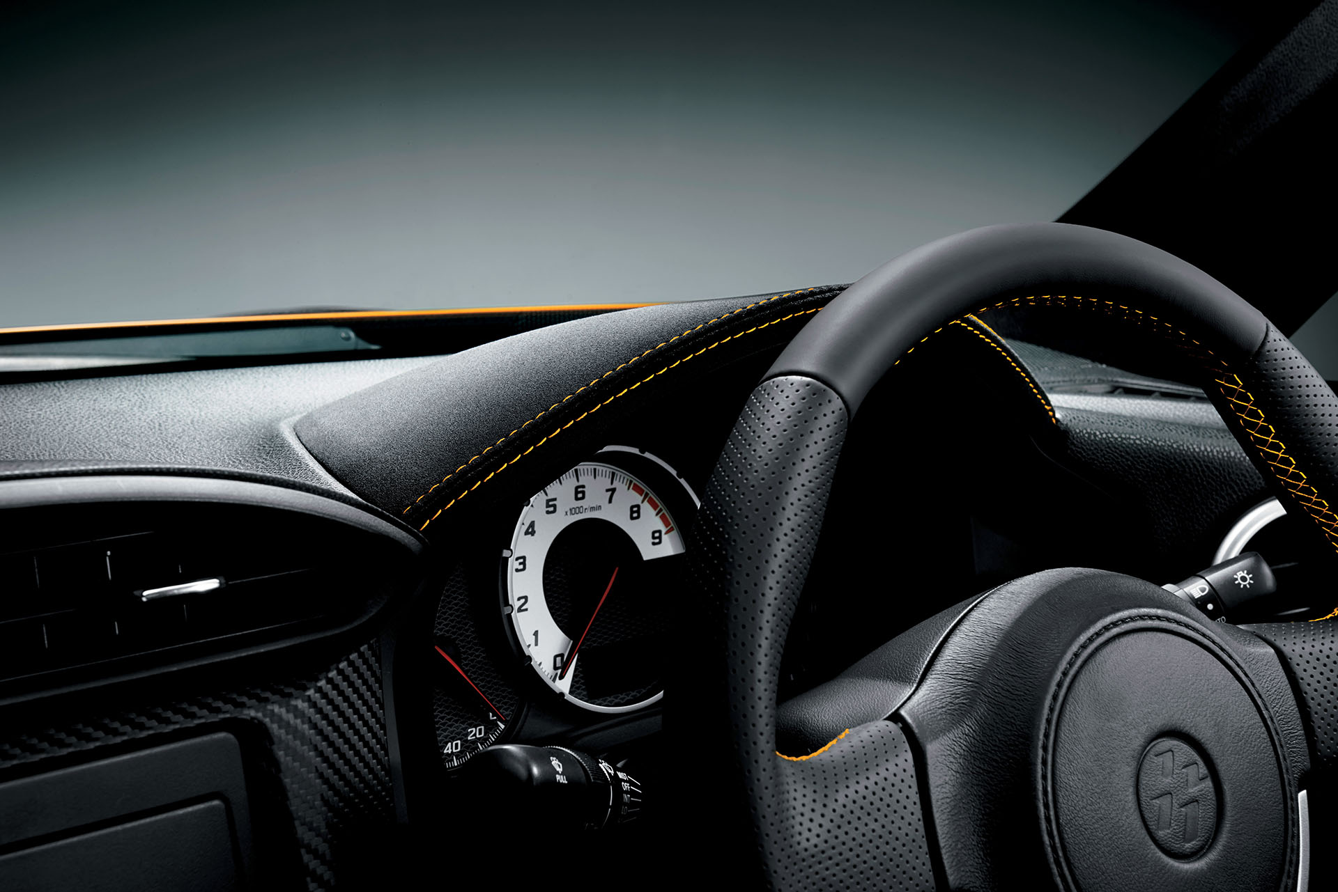 しかも、内装はブラックを基調色としつつ、シートやステアリングにイエローのステッチを贅沢に仕込んでいます。ディテールもグッドですね。また、本革シートやメーターバイザーといった一部の素材をアルカンターラにするなど、ひとクラス上の質感まで与えられているのです。