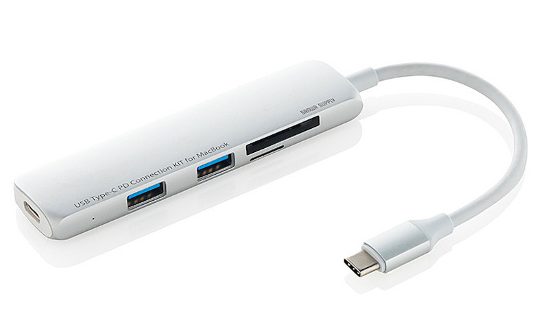 そこで役に立つのが、「400-ADR310SPD」(5780円)と「400-HUB050PD」(6780円)。どちらも、充電用のUSB Type-Cポート1つとUSB3.0ハブポート2つを備えており、「400-ADR310SPD」にはmicroSD/SDカードリーダーを、「400-HUB050PD」にはHDMIポートを搭載しています。