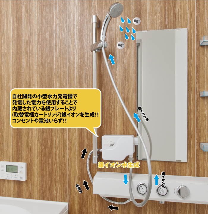 そんな悩みから解放してくれるのが、シャワーに取り付けるだけで銀イオン水を生成する、大洋技研の「Lino Ag⁺(リノ・エージープラス)」だ。