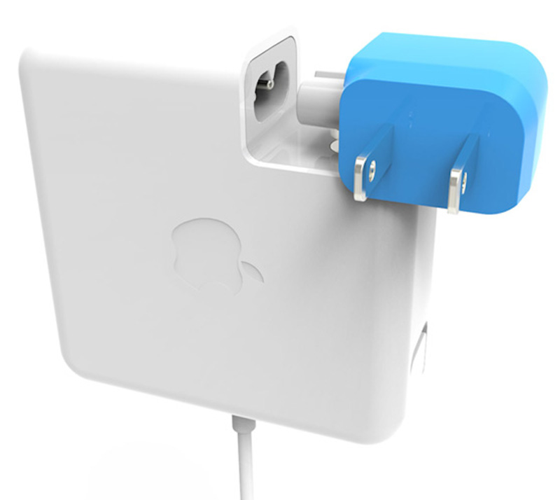 フォーカルポイントから登場したのは「Ten One Design Blockhead(テン ワン デザイン ブロックヘッド)」(2679円)。MacBookなどApple製ノートPCの純正アダプタの挿し込み部分と交換すると、ACアダプタを横向きに挿せるようになり、さらにケーブルが下から出るようになるんです。