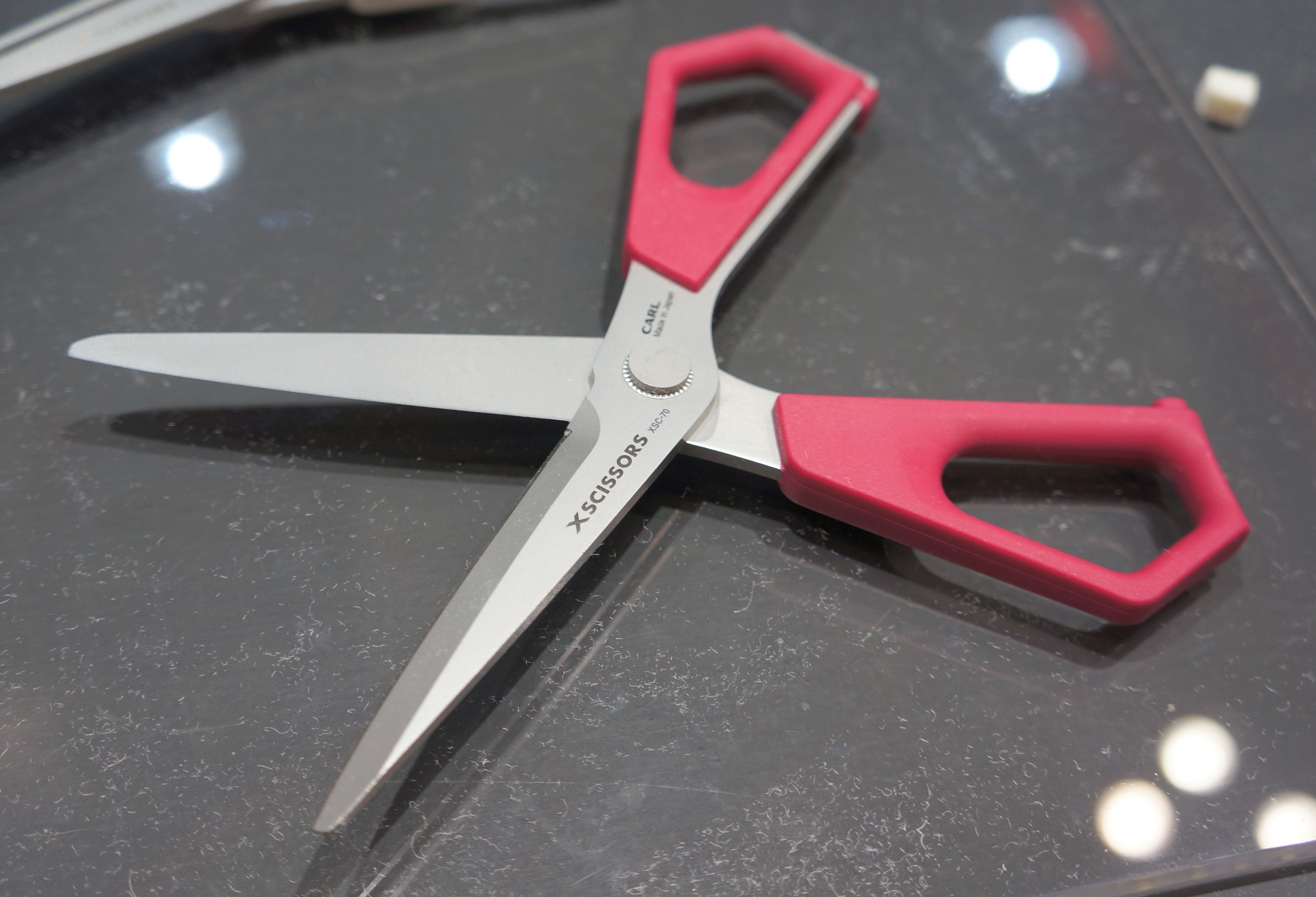 そうした思いのなか開発された「エクスシザース」は、刃に厚さ3mmのステンレス鋼版を採用し、刃のどの部分を当てても物を切り“落とす”ことができるよう設計されています。また、文具であることを考慮し、ハサミ本体があまり大きくなり過ぎないようにしたそうです。
