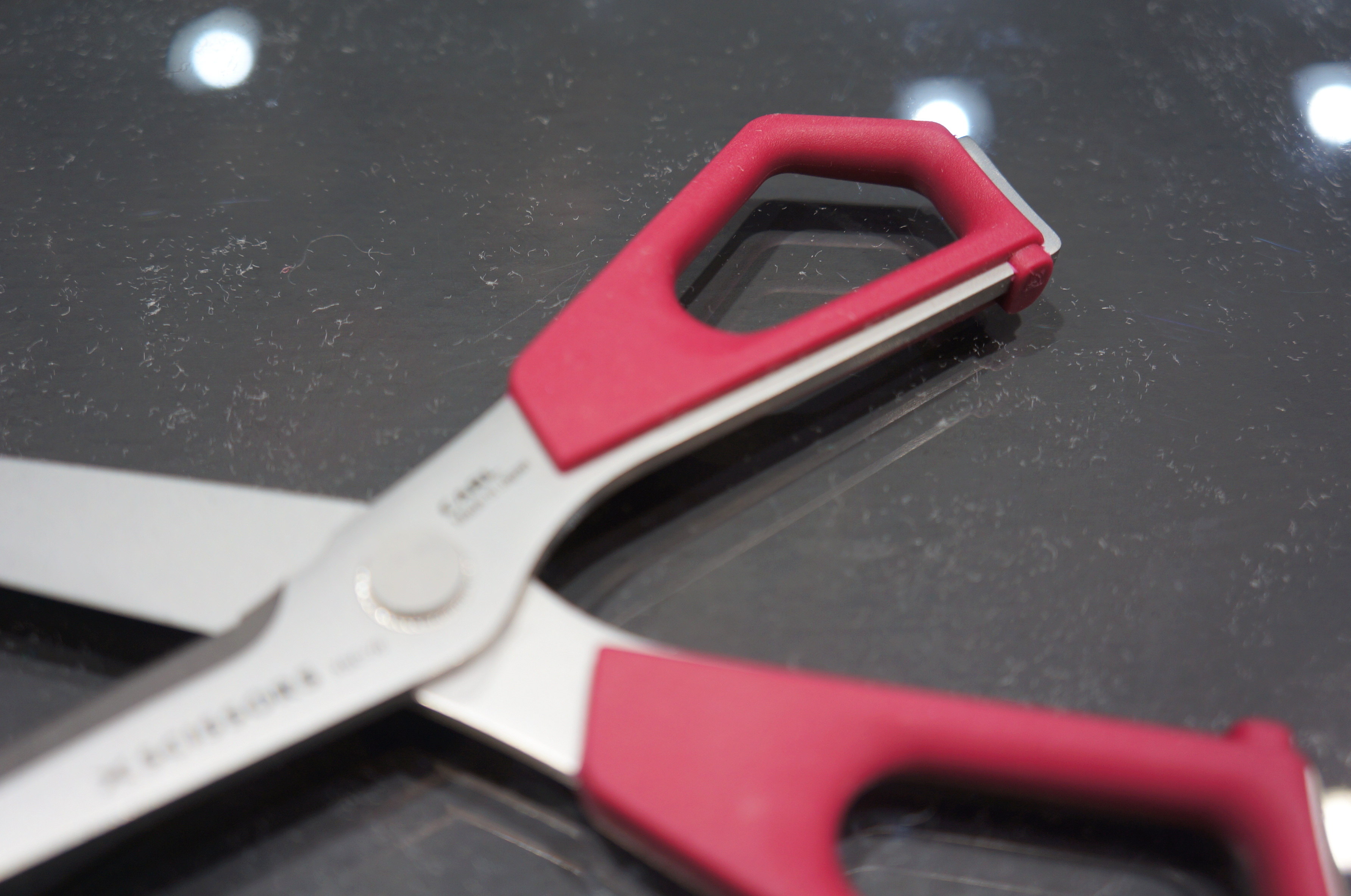 表彰式のあとに展示ブースを訪れ、実際の製品をチェックしてきました。一番注目したのは、表彰式でも語られた厚さ3mmの刃。職人が水研ぎによる刃付けを行っているため、圧倒的な裁断力が実現しました。