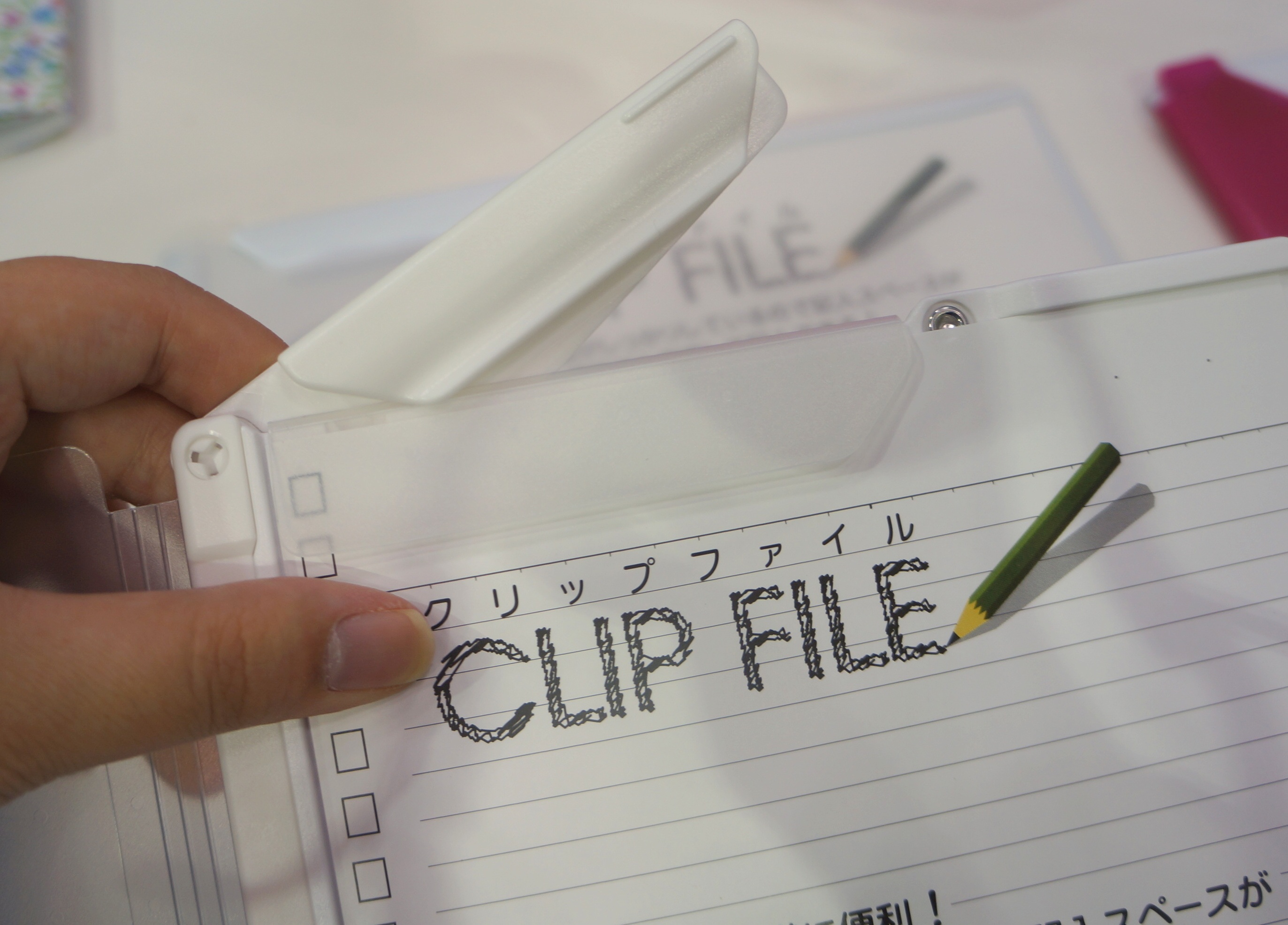 そして、ファイルの右側にあるのが紙やノートを挟めるボード。安定感のある硬いボードなので、外出先でも立ったままメモを取れますクリップを上下させ紙を挟めば“書類を持ち運べるノート”としても活用できそう。