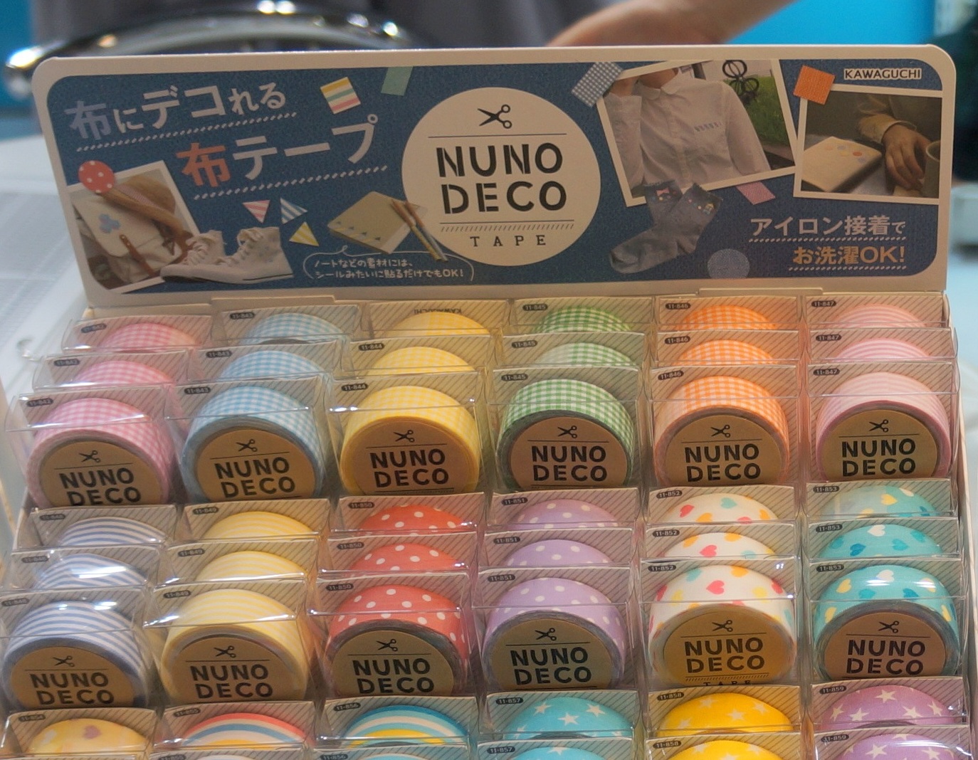 KAWAGUCHIが販売する「NUNO DECO」は、布に貼り付けられるカラフルなテープです。使い方は、テープを使いたい分だけ取り出して布にはるだけ。マスキングテープのようにカラフルなデザインが特徴ですが、テープにアイロンをかければ洗濯しても剥がれ落ちません。