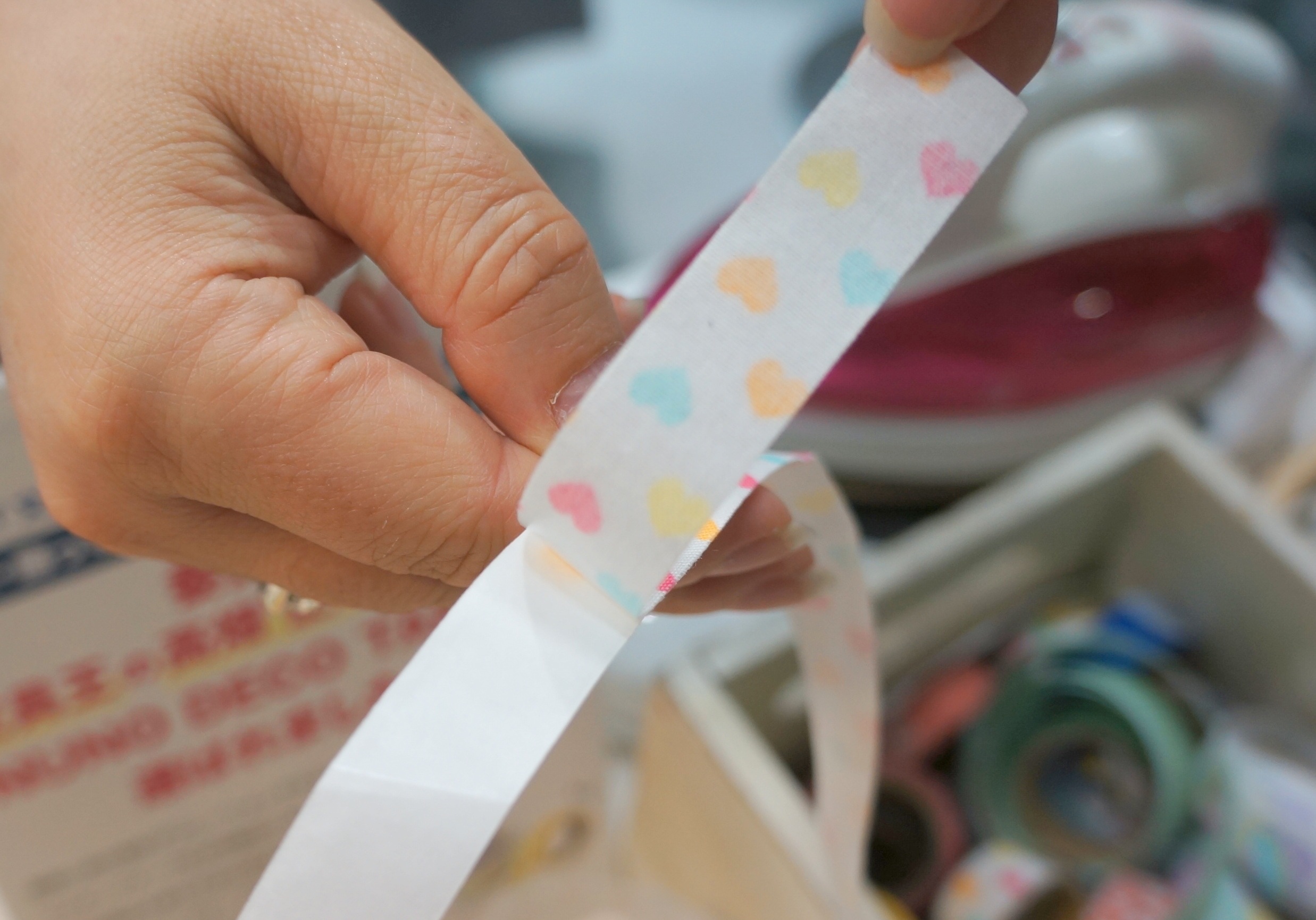 布以外に貼ったり、テープのうえから字を書いたりと使い方はさまざま。通常のマスキングテープと違い、はくり紙付きなので自分の好きな形にカットすることも可能です。販売価格は410円。