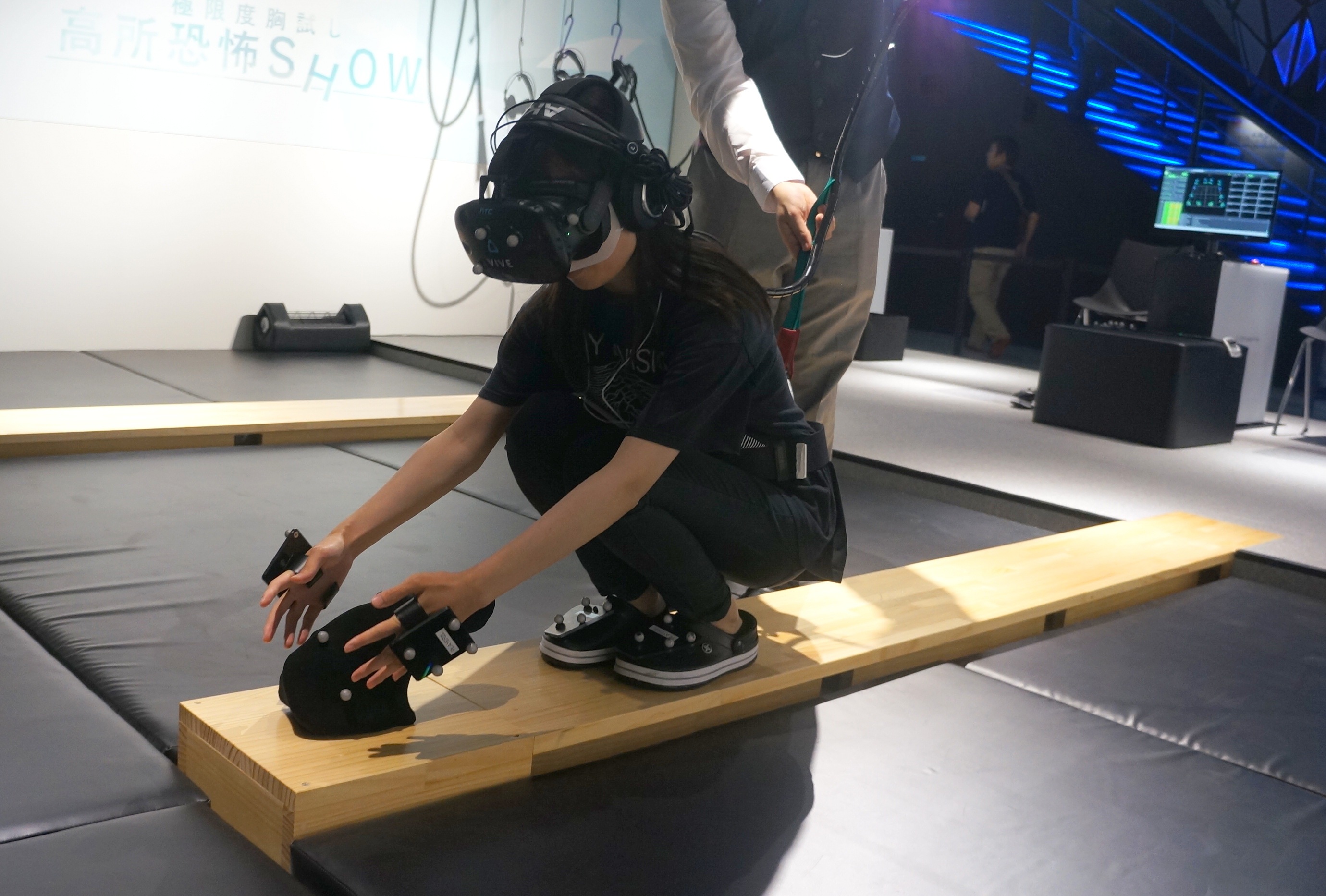 そう思ってしまったのが、「極限度胸試し 高所恐怖SHOW」。地上200mに迷い込でしまった子猫を助け出す、というストーリーなのですが、救出すべき猫がいるのは、なんと突き出た板の先! VRで地上200mの景色を見ながら狭い板の上を進むのは、かなり怖かったです。
