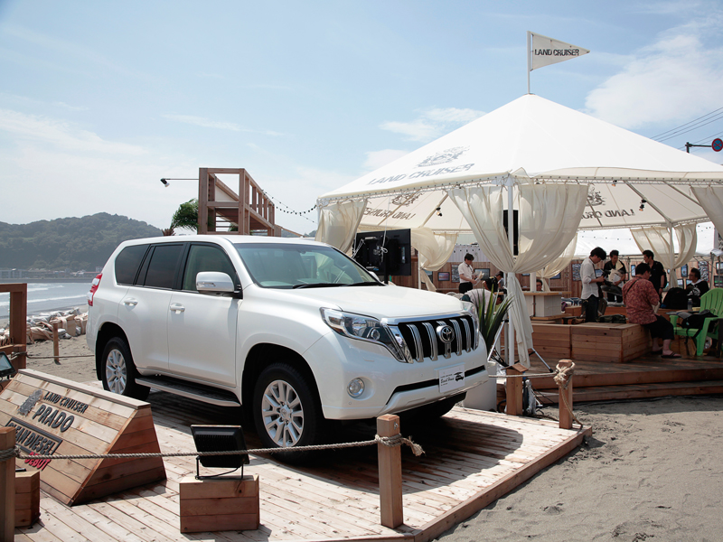 “LAND CRUISER”の旗がはためくテントの前には、先頃、新たにクリーンディーゼルを搭載した「ランドクルーザー プラド」が展示され、五大陸を旅する楽しい想像がますます膨らむ、かも!?