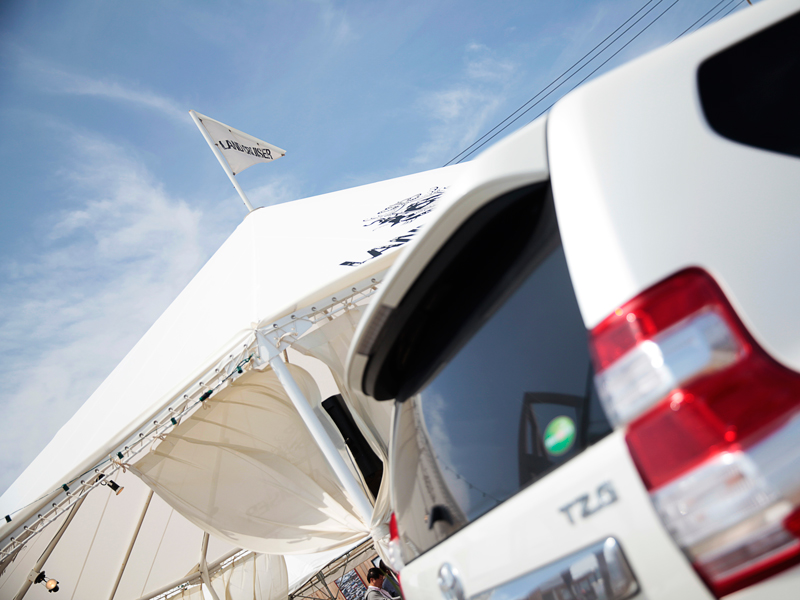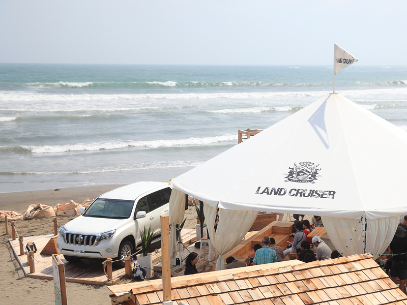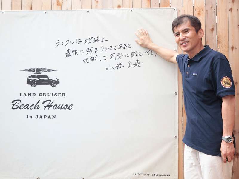 「ランドクルーザービーチハウス in JAPAN」のオープニングイベントには、ランドクルーザー プラドの開発責任者、小鑓貞嘉(こやり・さだよし)氏が駆けつけ、ランドクルーザーへの想いを語りました。そして、フラッグに次のような書き込みを…。