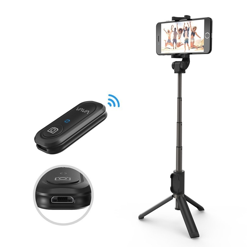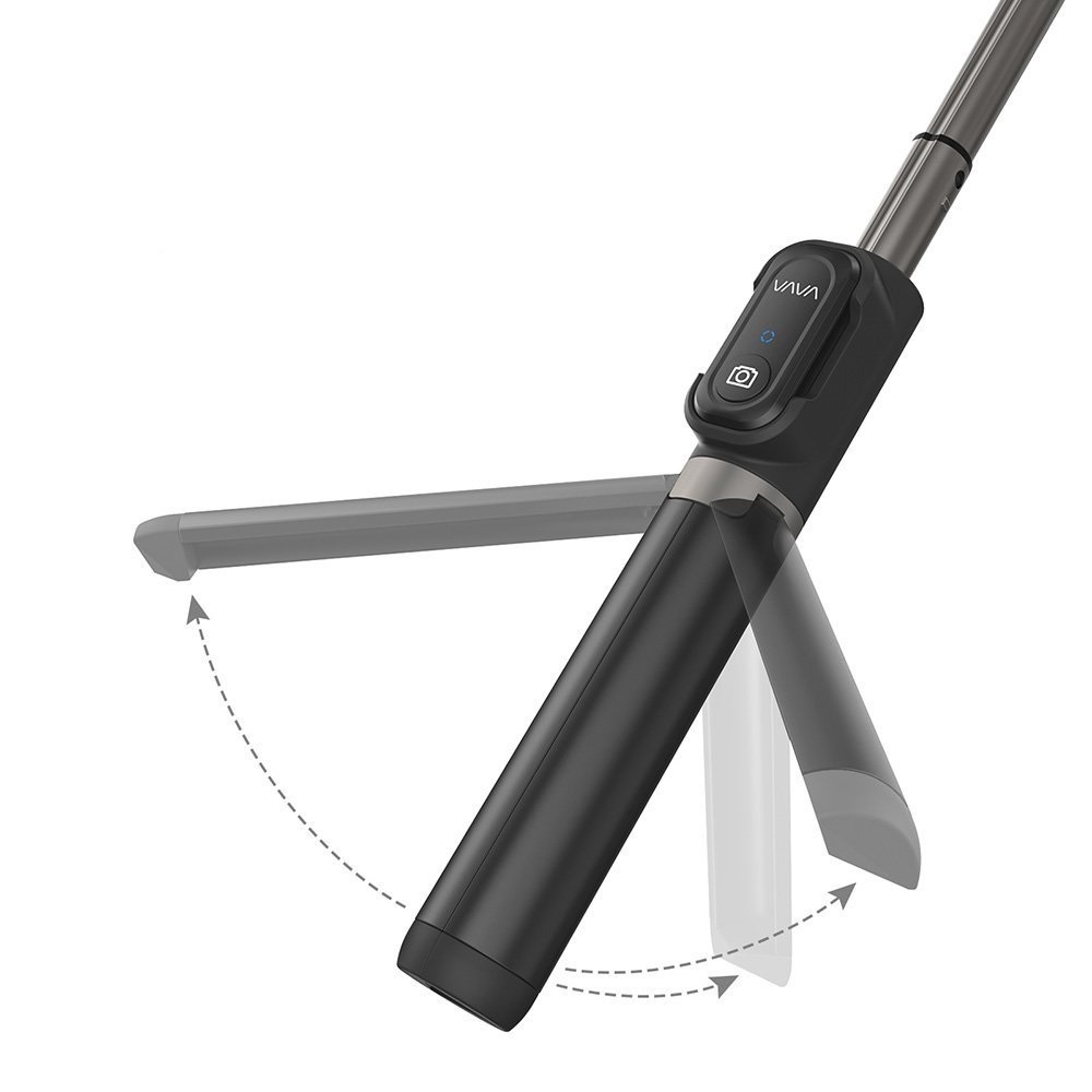 今回登場したのは「VAVA 自撮り棒 VA-ST001 1台2役(三脚/セルカ棒) Bluetoothリモートシャッター 」(2399円)。一見ごく普通の自撮り棒ですが、さまざまなシーンをしっかり撮影できる工夫が凝らされています。その一つが<三脚>としても使えるということ。