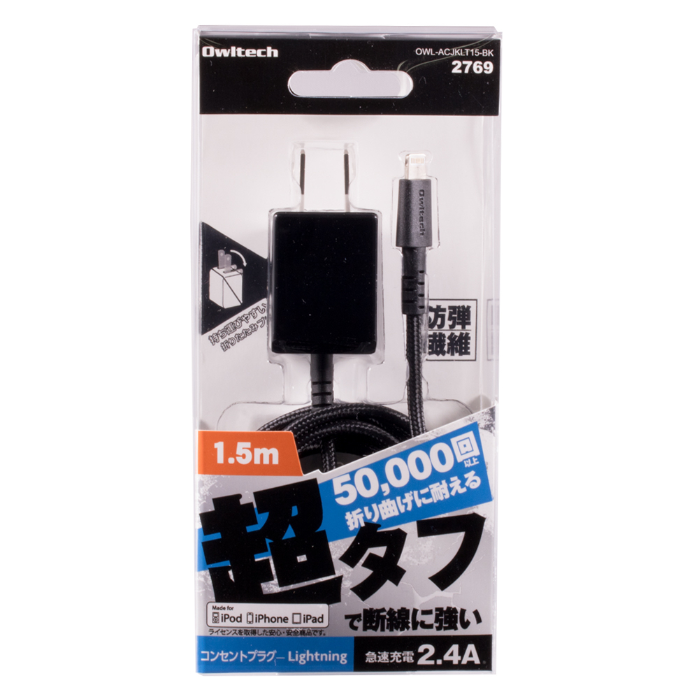 家庭用コンセントで使用するAC充電器にケーブルが付いたタイプと、急速充電+データ転送ケーブル単体の2種類があり、それぞれLightningコネクタ(Lightning/USB Type-A)、USB Type-Cコネクタ(USB Type-C/USB Type-A)、micro USBコネクタ(micro USB/USB Type-A)の3タイプ、合計6シリーズをラインナップ。