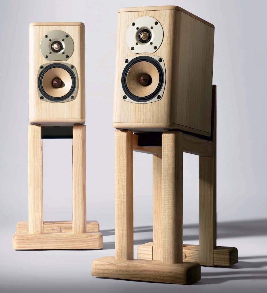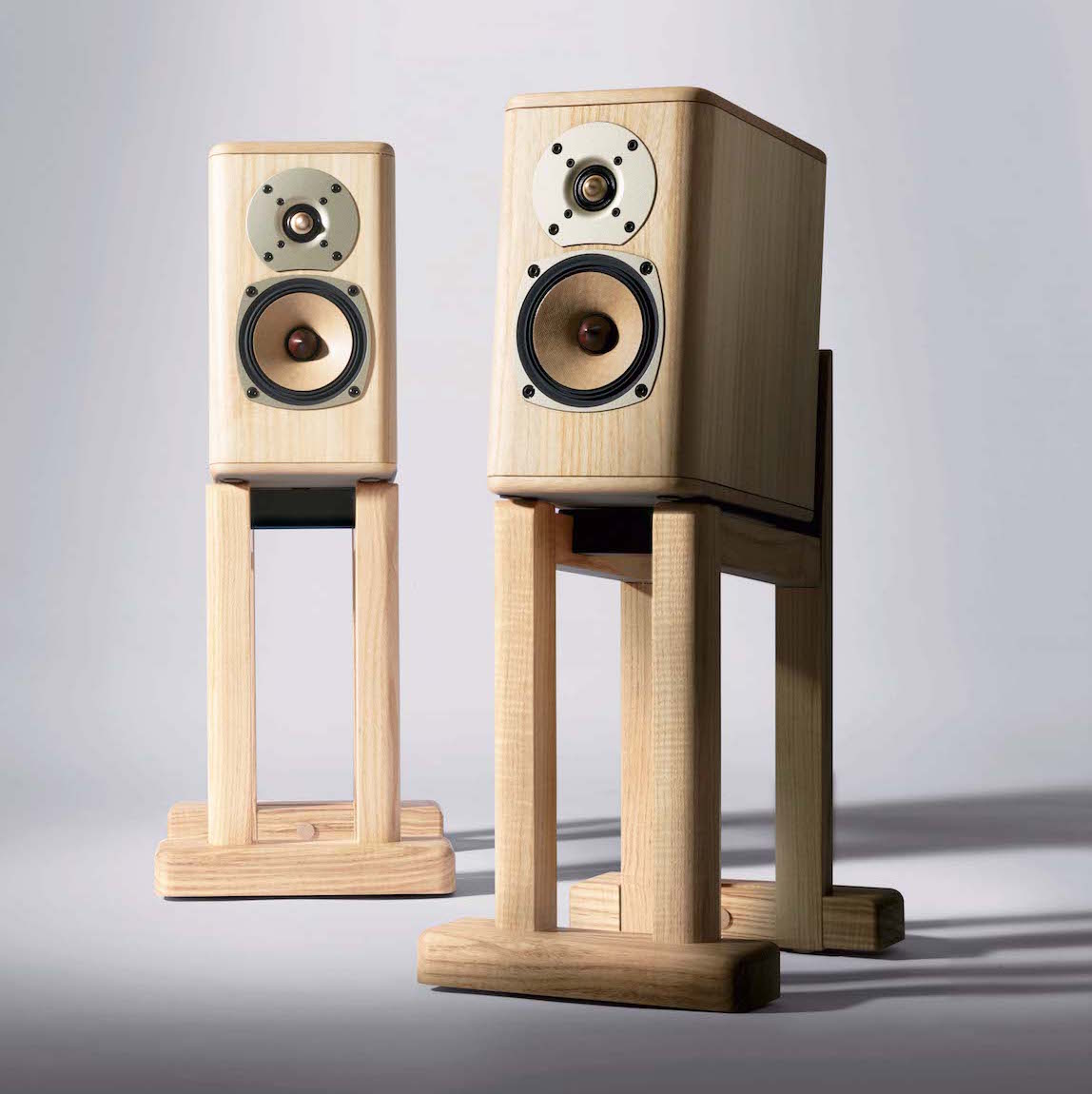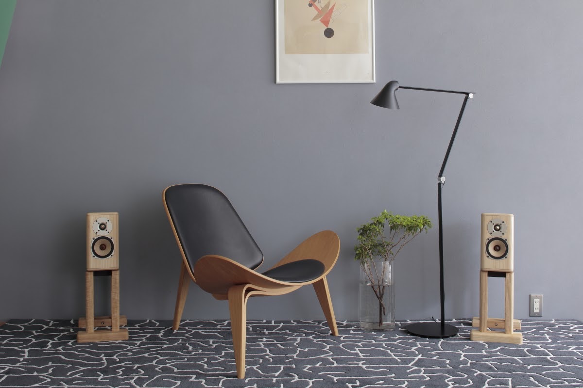 スピーカーとセットで、タモ材と一部黒檀材による専用スピーカースタンドが付属。不要振動を低減しつつも、自然な振動をそのまま生かす構造に。