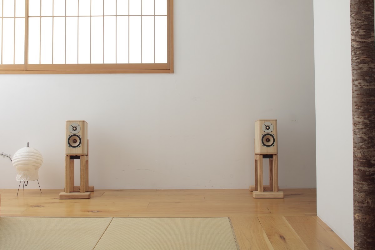 スタンドも含めた「桐スピーカー」は全体の佇まいはまるで和太鼓のよう。凛としつつも穏やかな雰囲気で、和モダンなお部屋やナチュラルテイストのお部屋にもマッチし、インテリアとしての美しさも一級品。