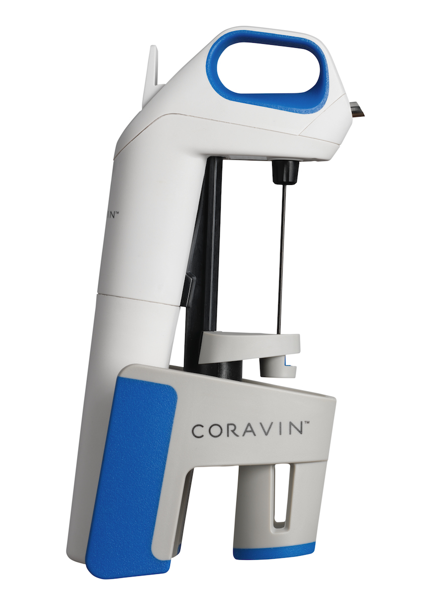 薄型医療グレードのニードルをコルクに挿し、純度99.0%の窒素ガスをポンプで注入して加圧しながらワインを注ぐ、という仕組みです。その後、ニードルを抜けば、なんとも不思議なことにコルクの穴は自然に封止され、元通りになります。