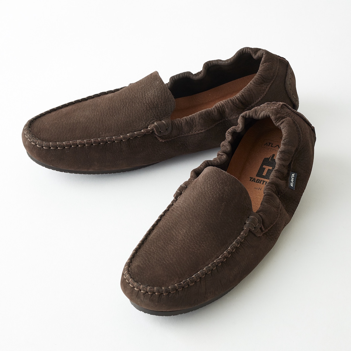 ポルトガルのブランドとして名高い・ATLANTA MOCASSIN(アトランタ・モカシン)とのコラボによる、携行性と履き心地を重視したオンオフ兼用モカシン。高品質なヌバック素材でフォーマルな雰囲気があり、アンチスリップ効果を持たせたアウトソールを装備していながら、折りたたんでコンパクトにできます。