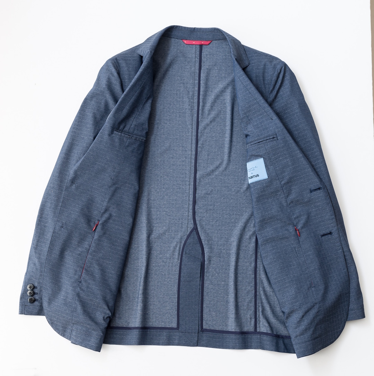 さらに、パスポートを落とさないファスナー付きポケットや、胸ポケットの赤い裏地を用いたフェイクチーフなど、さまざまなシーンで使える工夫も満載。デザインと着心地、携帯性を兼ね備えた一着です。M、L、LLの3サイズ展開で、3万6720円。
