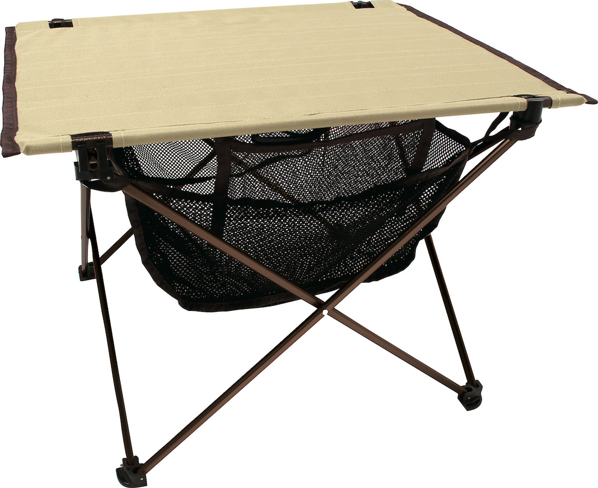 天板部分は600Dポリエステル&補強フレーム入りで、折り畳みでもしっかり安定。十分な広さを確保してくれるローテーブルがあれば、屋外でのランチやスナックも楽しめます。