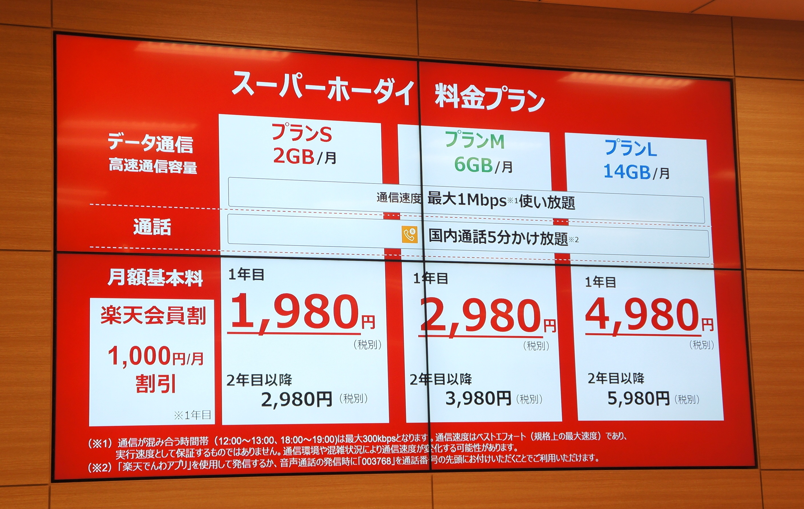 楽天会員の場合、「スーパーホーダイ」の1年目の利用料金が1000円引きに、「ダイヤモンド会員」の場合月額料金がさらに500円引きになります。