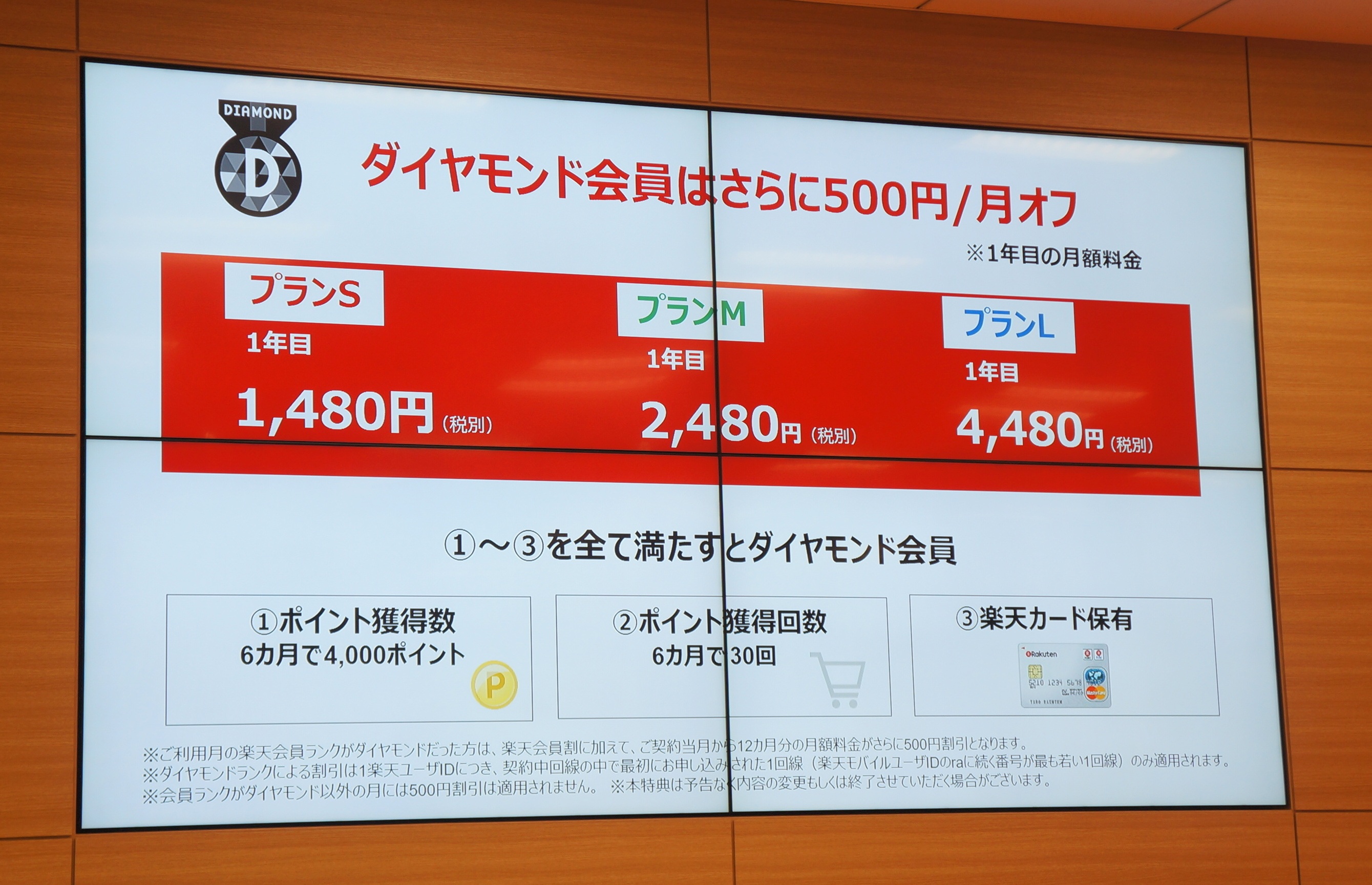 「ダイヤモンド会員」とは、「ポイント獲得数が6か月で4000ポイント」「6か月で30回以上ポイントを獲得」「楽天カードを保有」といった3つの条件を満たしている会員のこと。つまり、楽天のシステムを上手に使えば、月額料金1480円(税別)から「スーパーホーダイ」を利用できるのです。