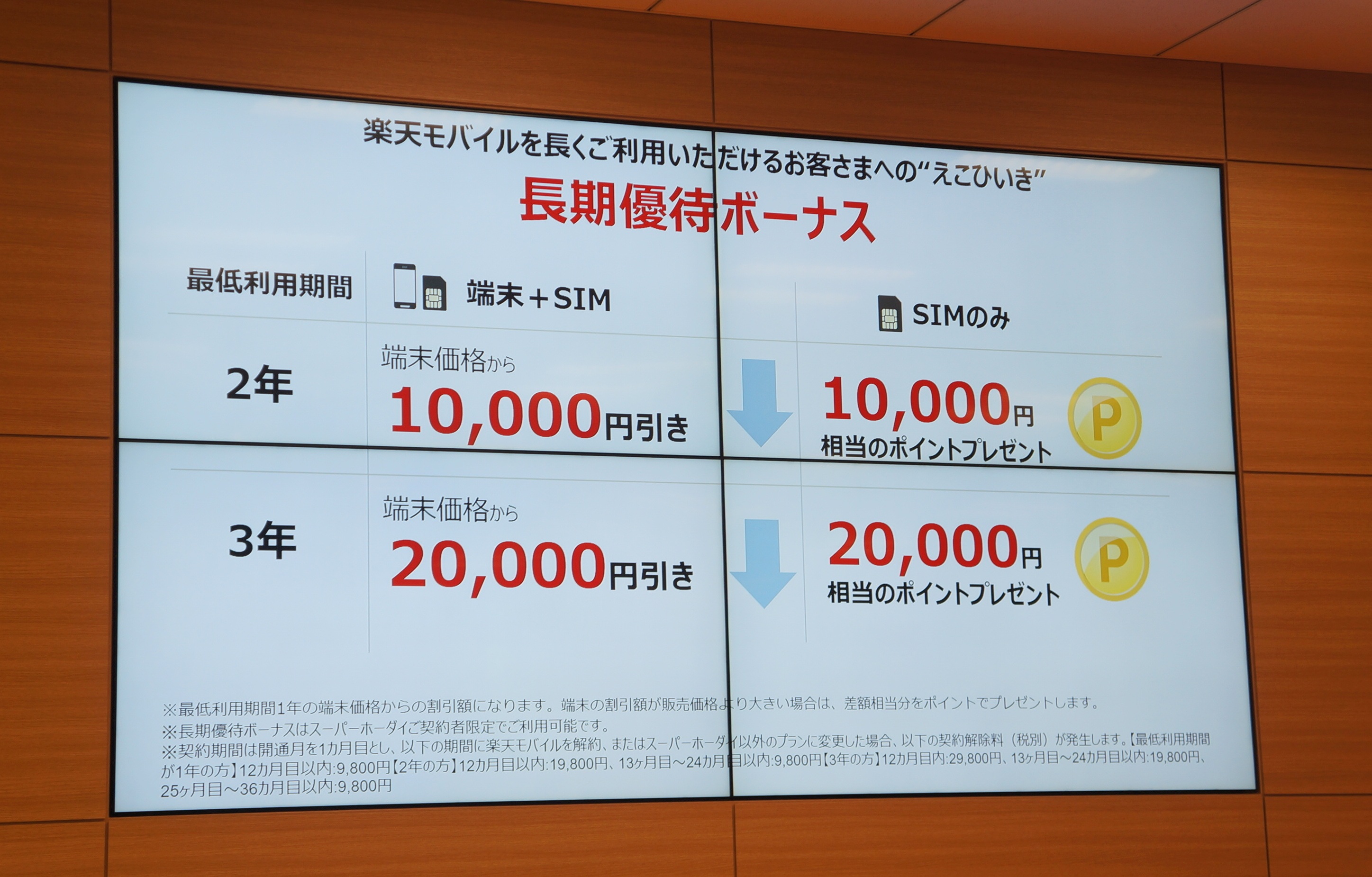 SIMのみの場合、最低利用期間が2年で1万円相当のポイントが、3年で2万円相当のポイントが付与される仕組みです。