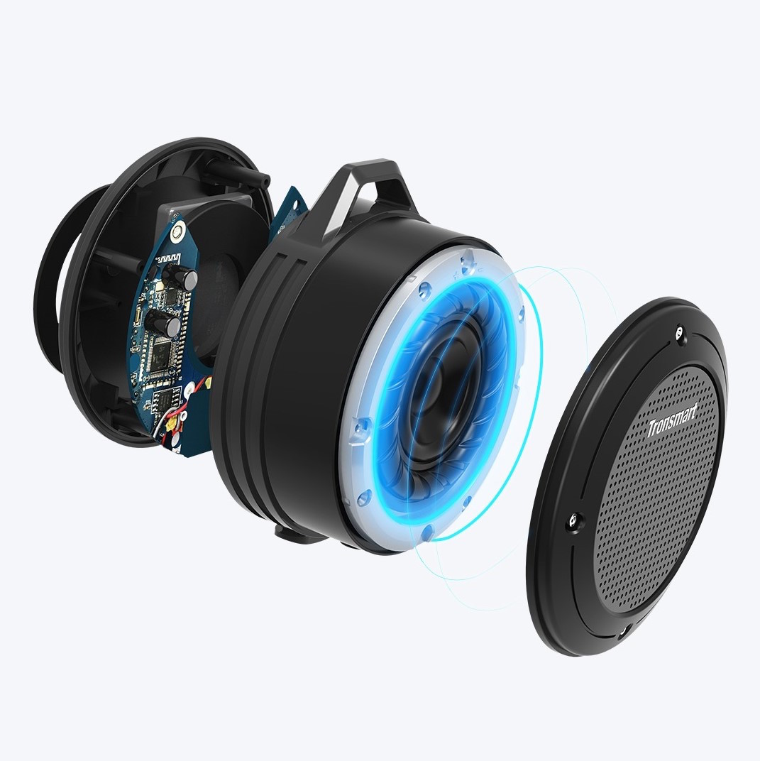 「Tronsmart T4」は最大5Wの出力を備えたBluetoothスピーカー。驚くのはその小型っぷり。本体はわずか8cm×9cmと世界最小クラスで、ポケットに入れてどこにでも持ち運べます。また、IP67レベルの防水・防塵性能を備え、ABS樹脂によって衝撃にも強いのでアウトドアにはうってつけです。