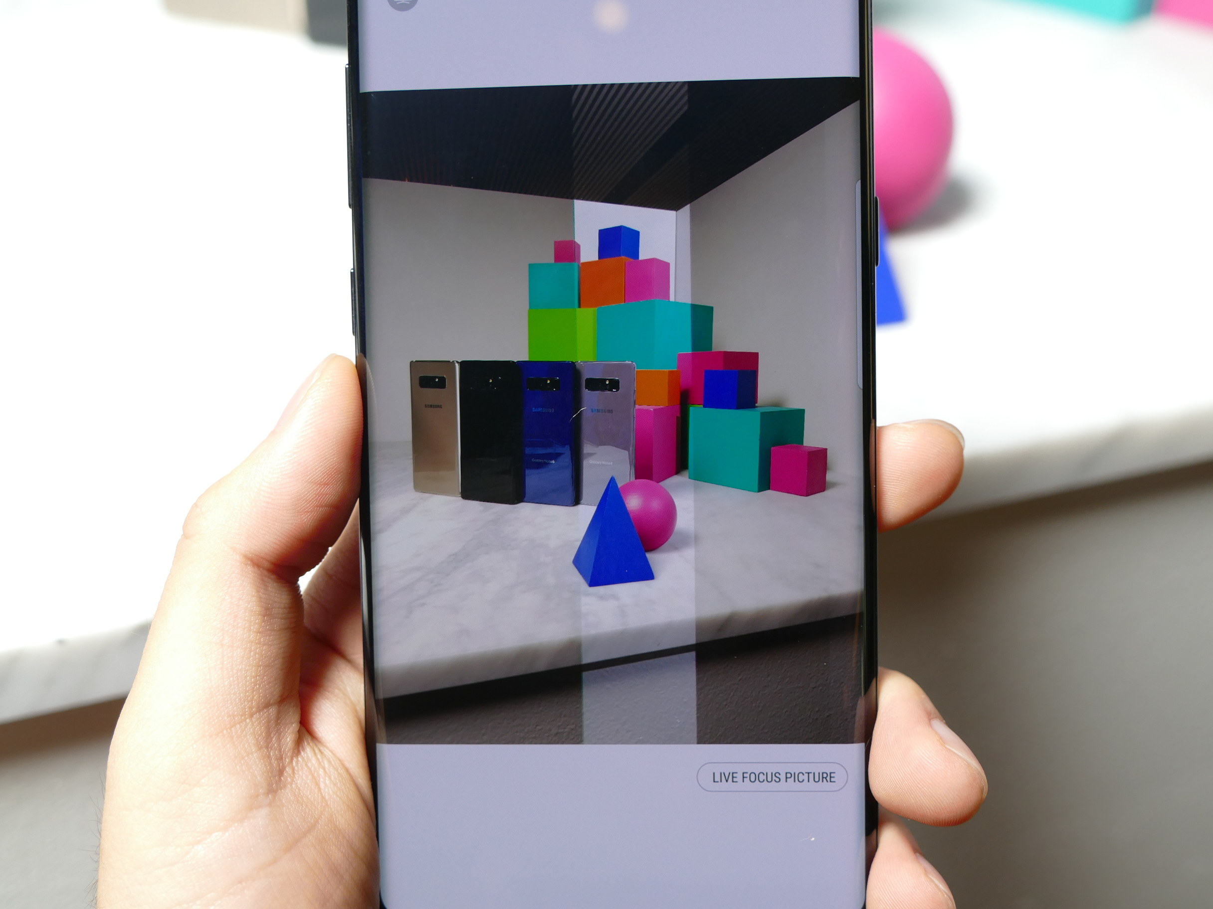 「Note8」は背面に、同社初となるデュアルカメラを搭載。1200万画素/F1.7/デュアルピクセルセンサーの広角カメラをメインに、1200万画素/F2.4の望遠カメラをサブとして搭載。ふたつのレンズを切り替えることで光学2倍相当のズームを再現。また、デジタルズームと組み合わせて最大10倍までのズームが可能になりました。