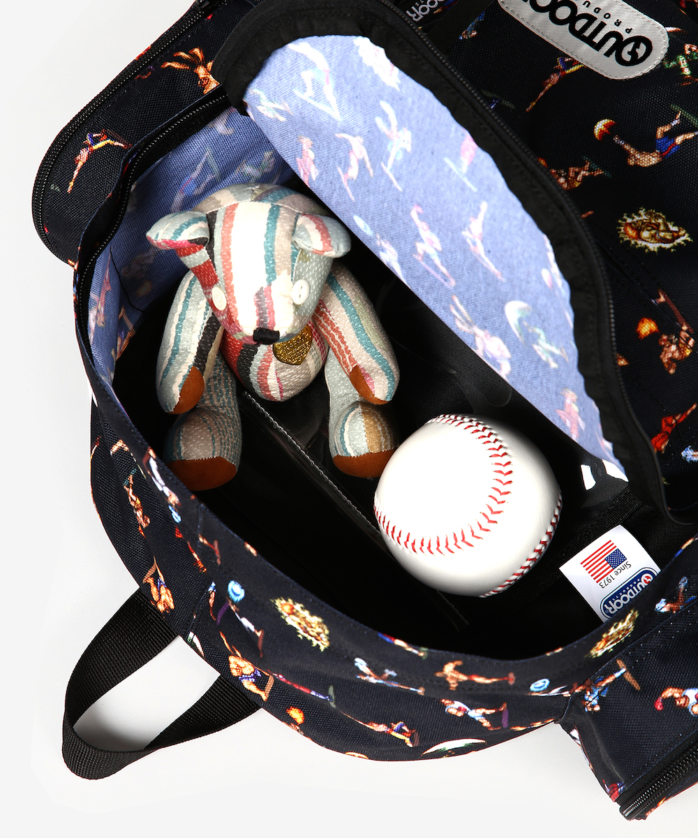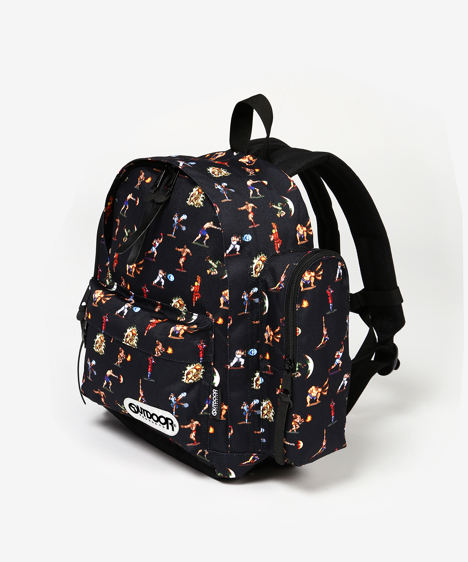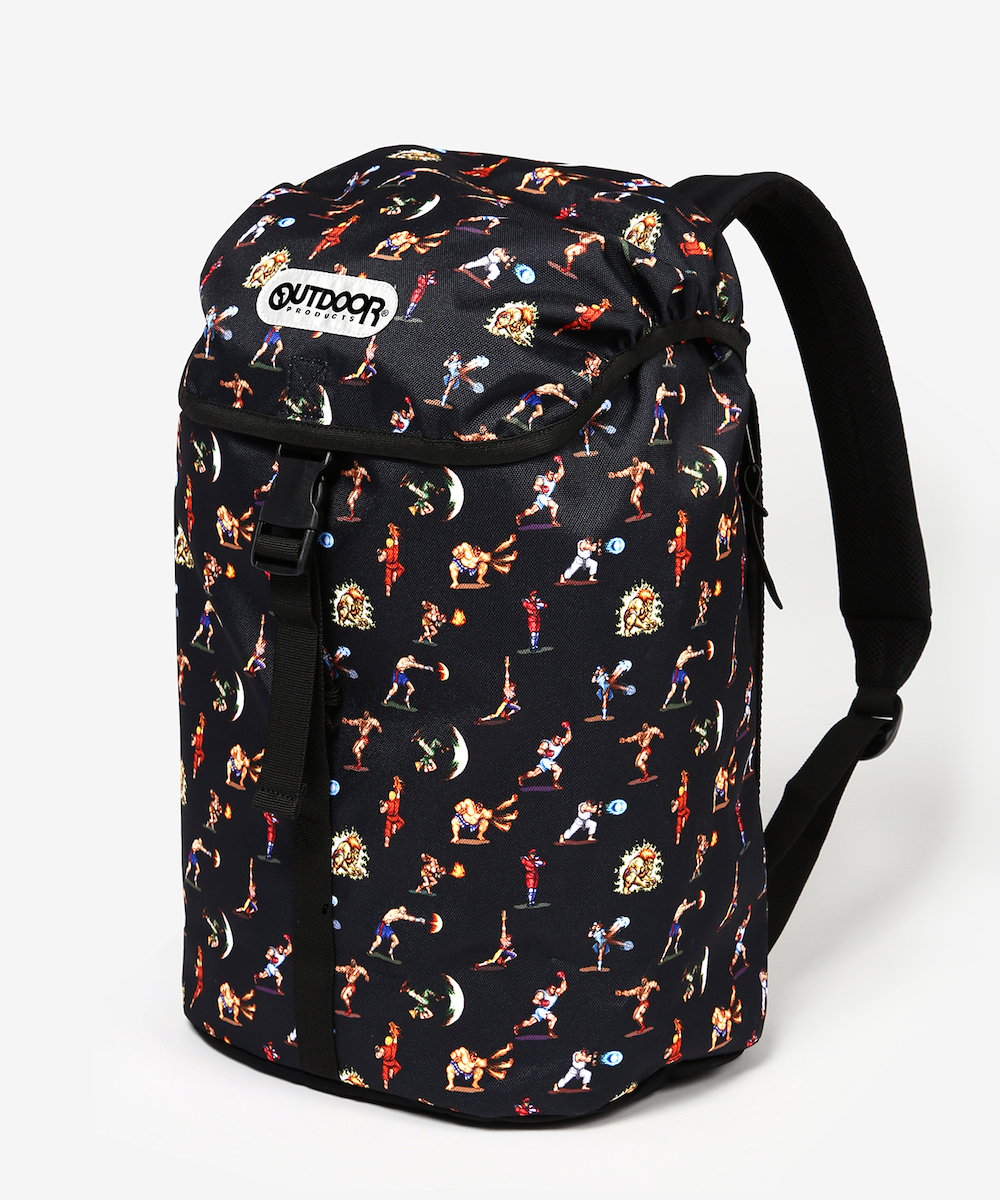 そして今回の「ストリートファイターⅡ」とのコラボレーションは、ブラックのベース生地にキャラクターが総柄でプリントされたデザイン。PCやタブレットを入れるに適したポケット付きで機能性もバツグン!