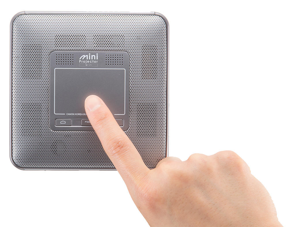 「ミニプロジェクター M-i1」は、幅105mm×奥行き105mm×高さ22mm、重さは約235gと、携帯性に優れた小型・軽量ボディ。操作は、本体上部のタッチパッド。内蔵メモリとUSB2.0の接続端子を備えていて、その内蔵メモリーやUSBメモリー内に保存したデータを呼び出し、映像投写できます。さらに、Wi-Fi機能とAndroid OS を搭載しており、インストールされた各種アプリを使ったり、Webブラウザの画面を投写するなど、本機単体でさまざまな使い方ができるのです。