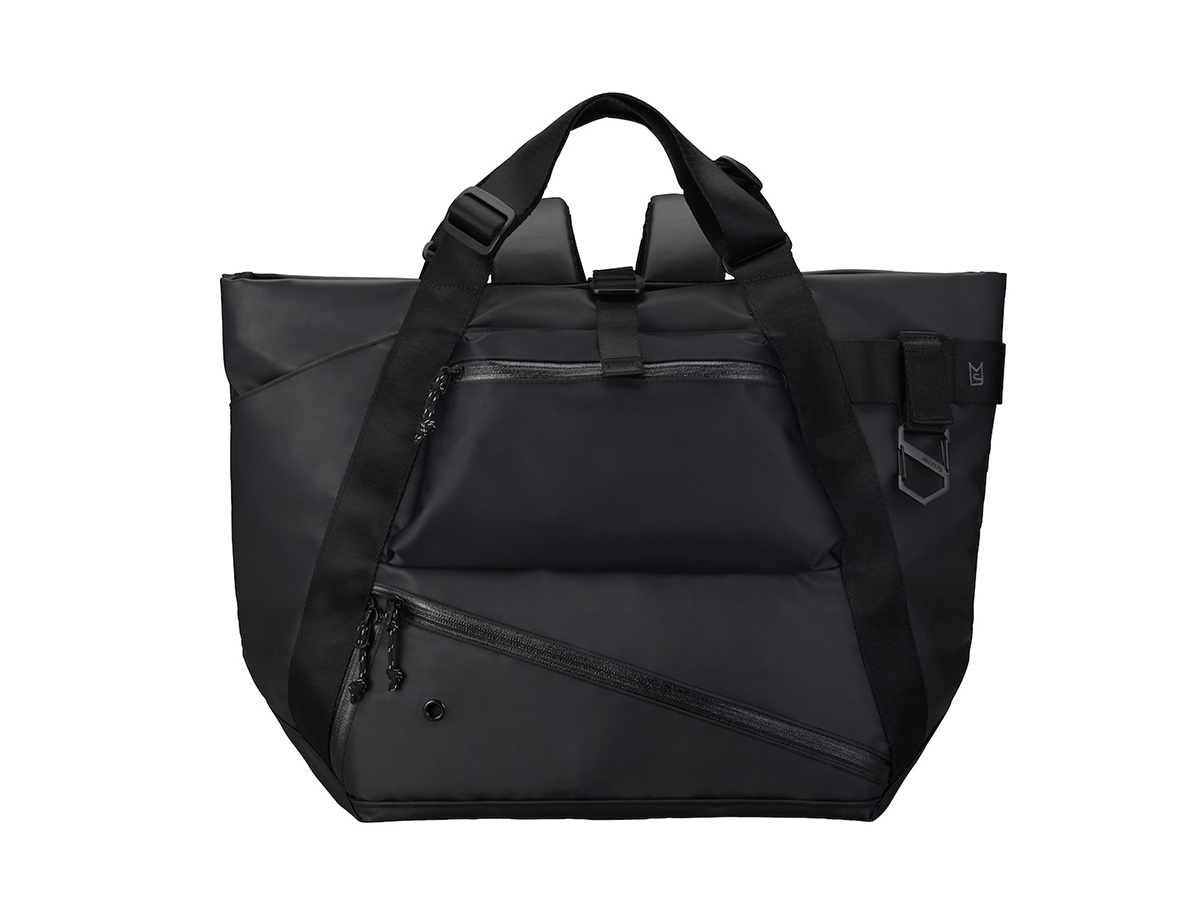 今回発売される新モデルのひとつ、「3WAYトートバッグ」(1万6000円+税)は、付属のショルダーストラップを活用し、トートバッグ・バックパック・ショルダーバッグの3WAYで使える仕様。W500×H330×D160mmと十分な容量を備え、下部のファスナーポケットはシューズが収まる通気孔付きのスペースとなっている。