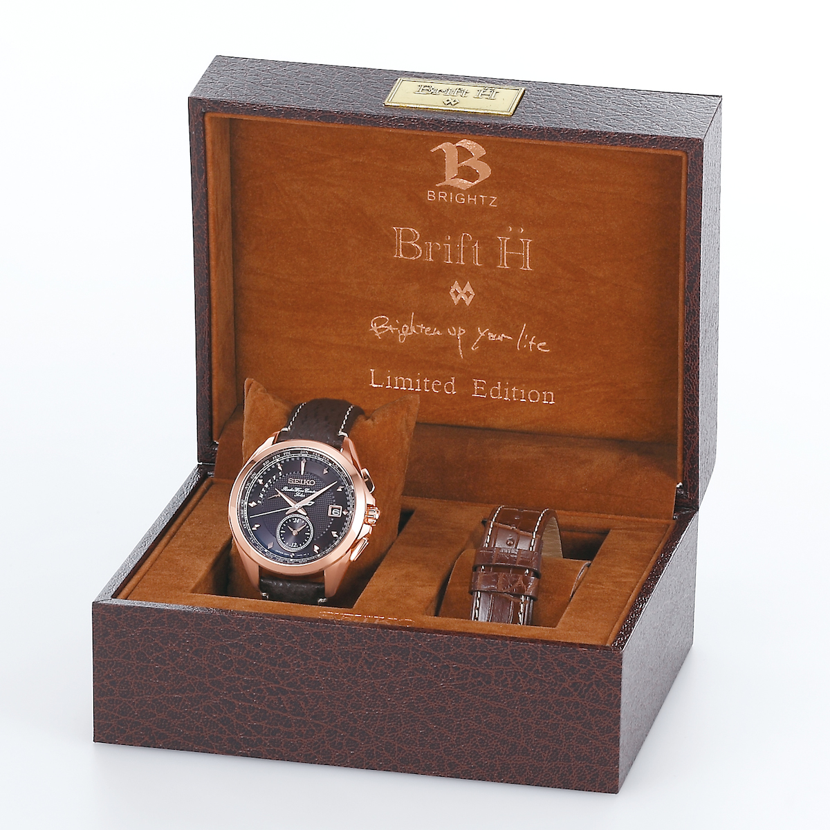 フェイス部分に目を移せば、ダイヤマークをモチーフに立体的にデザインされたアワーマークや時分針、外周に刻まれたレイルウェイトラックや英文字の筆記体表記など、クラシカルな演出で「Brift H」の世界観を見事に体現。